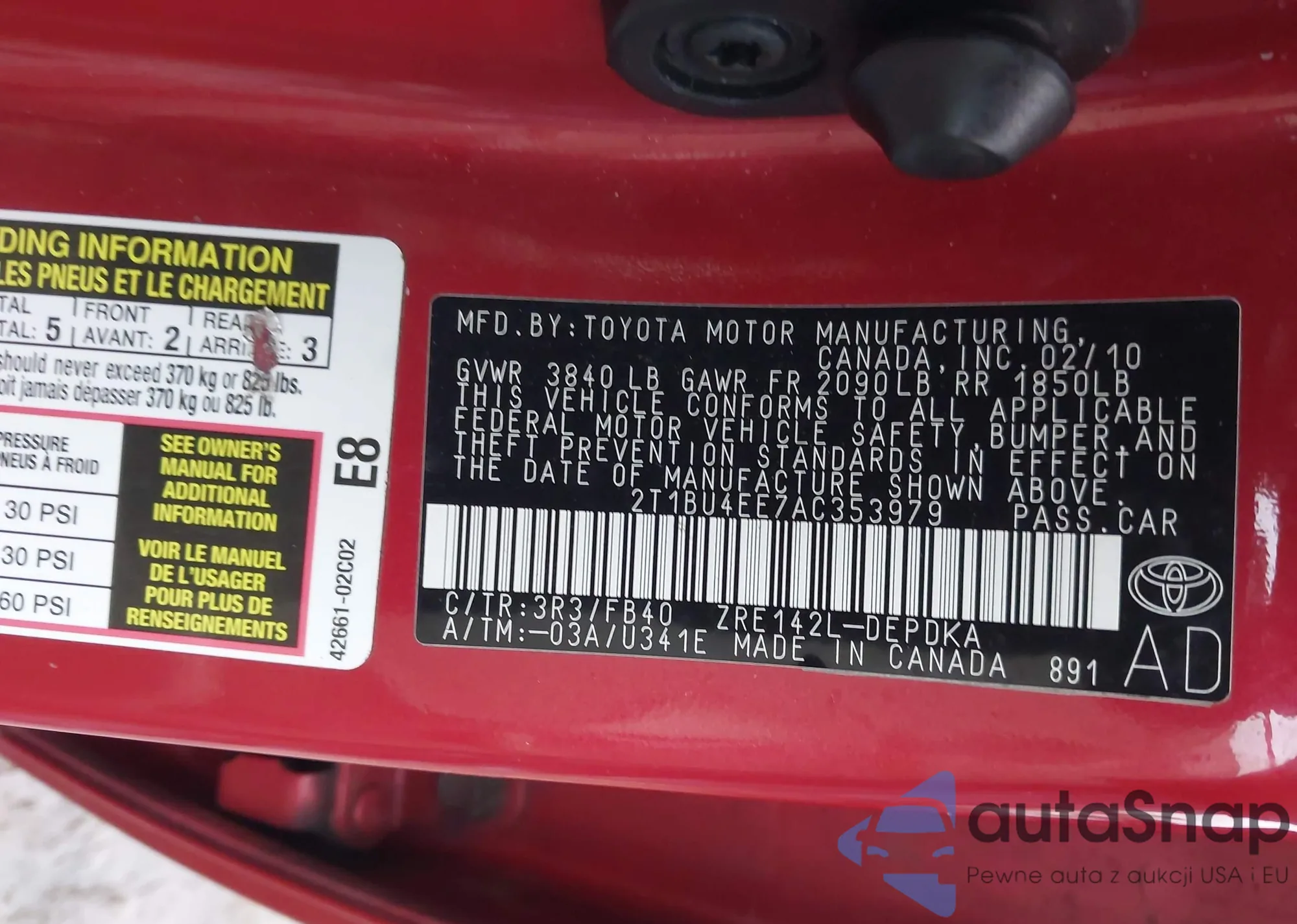 • VIN 2T1BU4EE7AC353979