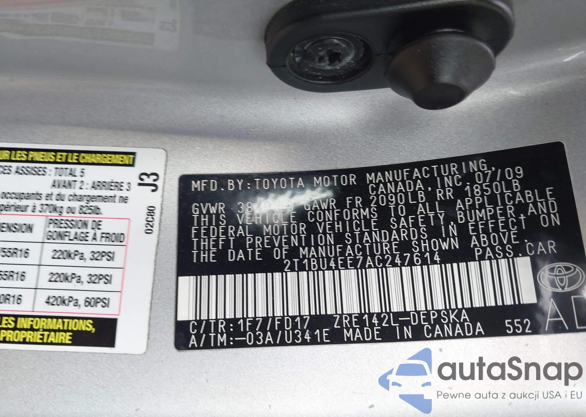 • VIN 2T1BU4EE7AC247614