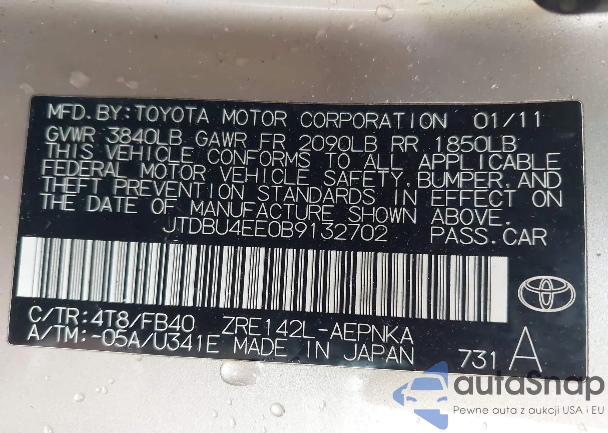 • VIN JTDBU4EE0B9132702