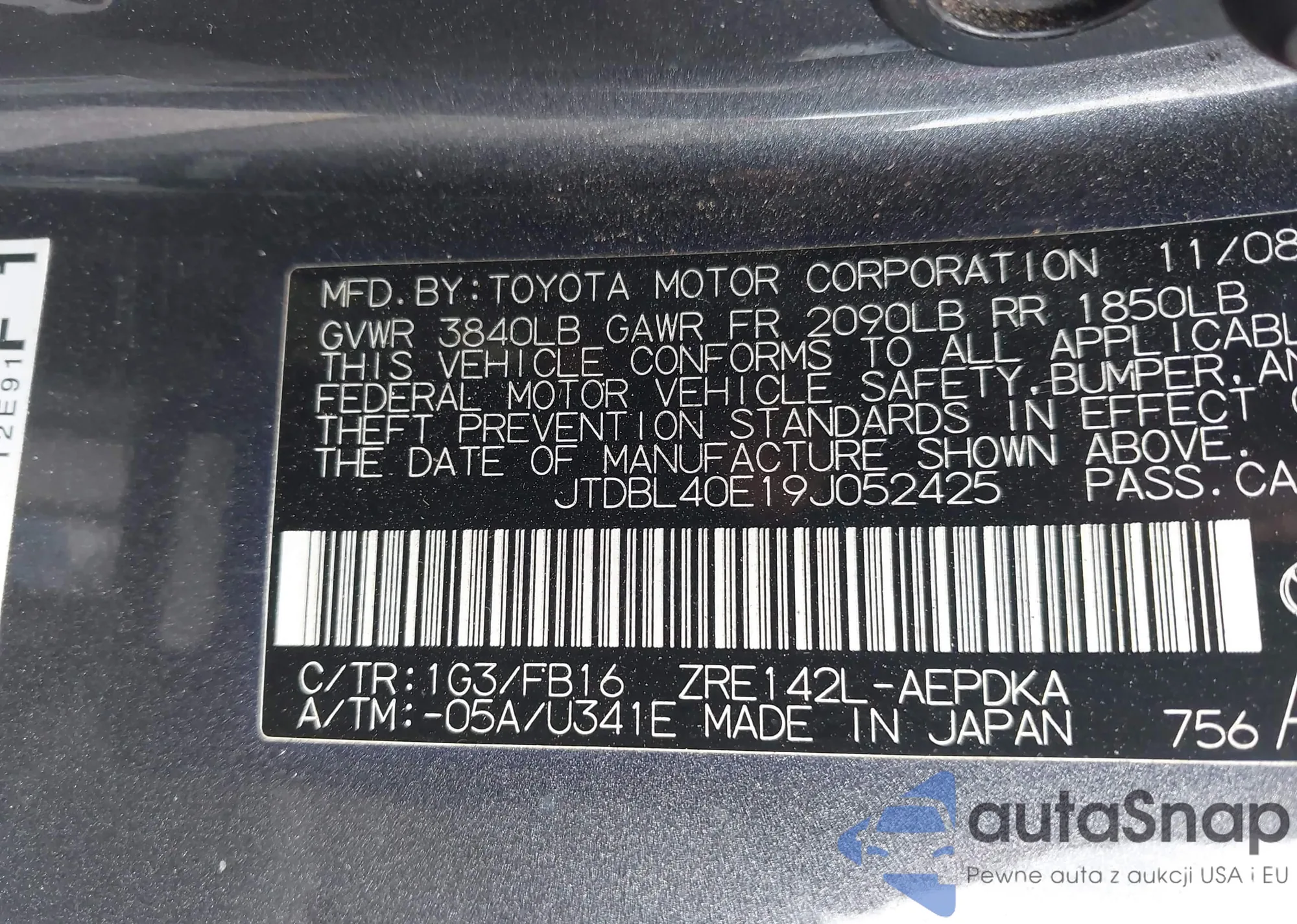 LOT: 43468762 VIN: JTDBL40E19J052425