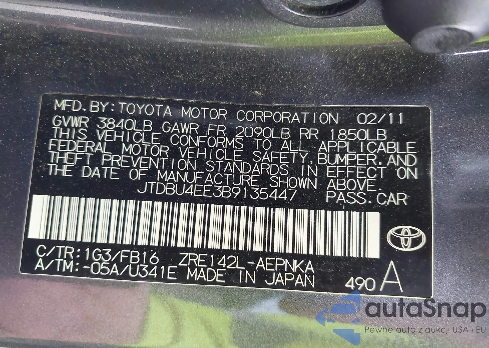 • VIN JTDBU4EE3B9135447