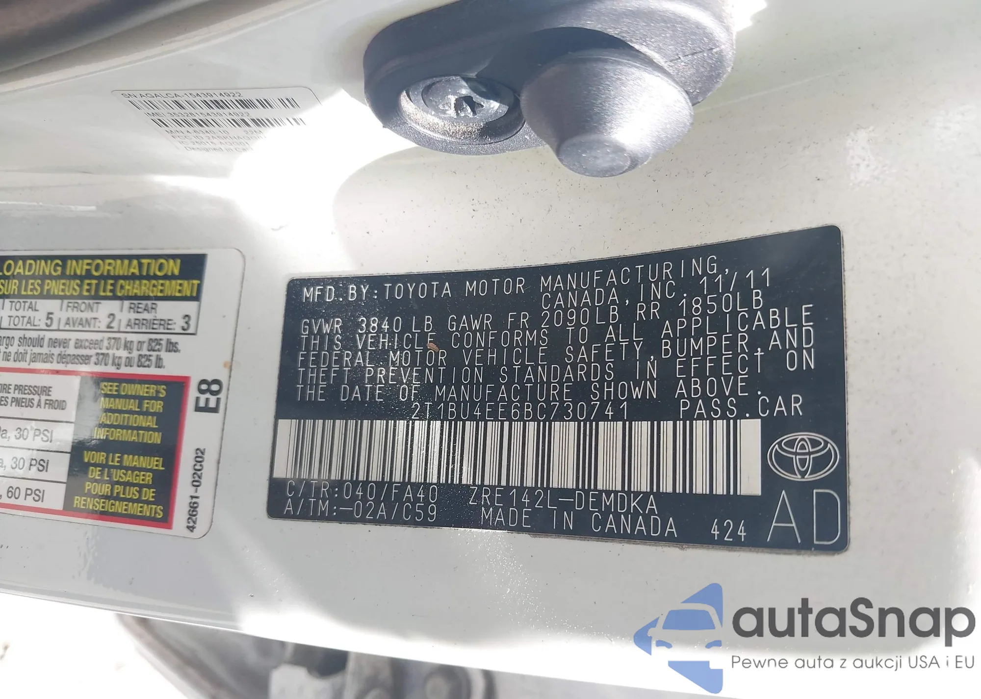 • VIN 2T1BU4EE6BC730741