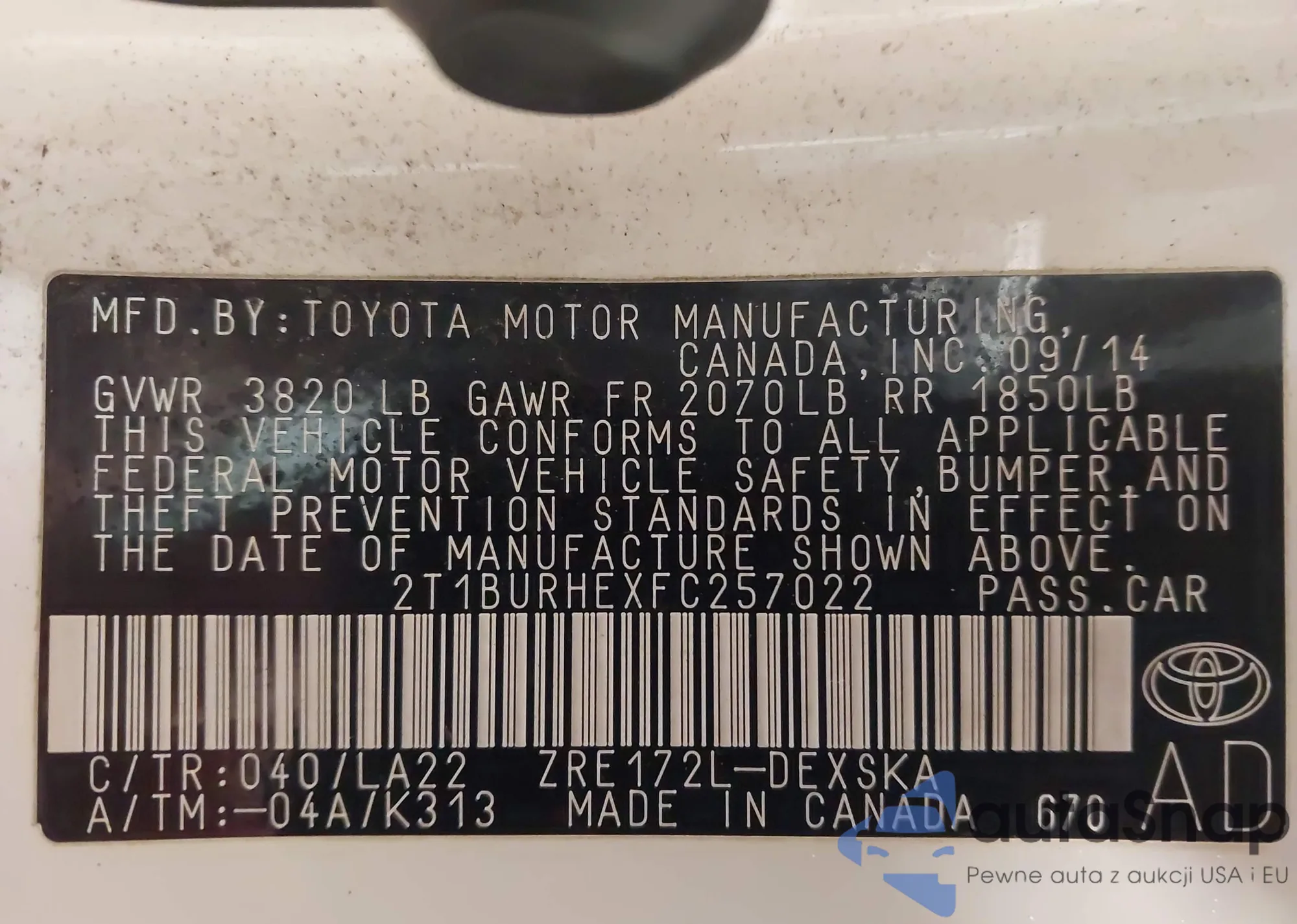 LOT: 44305327 VIN: 2T1BURHEXFC257022
