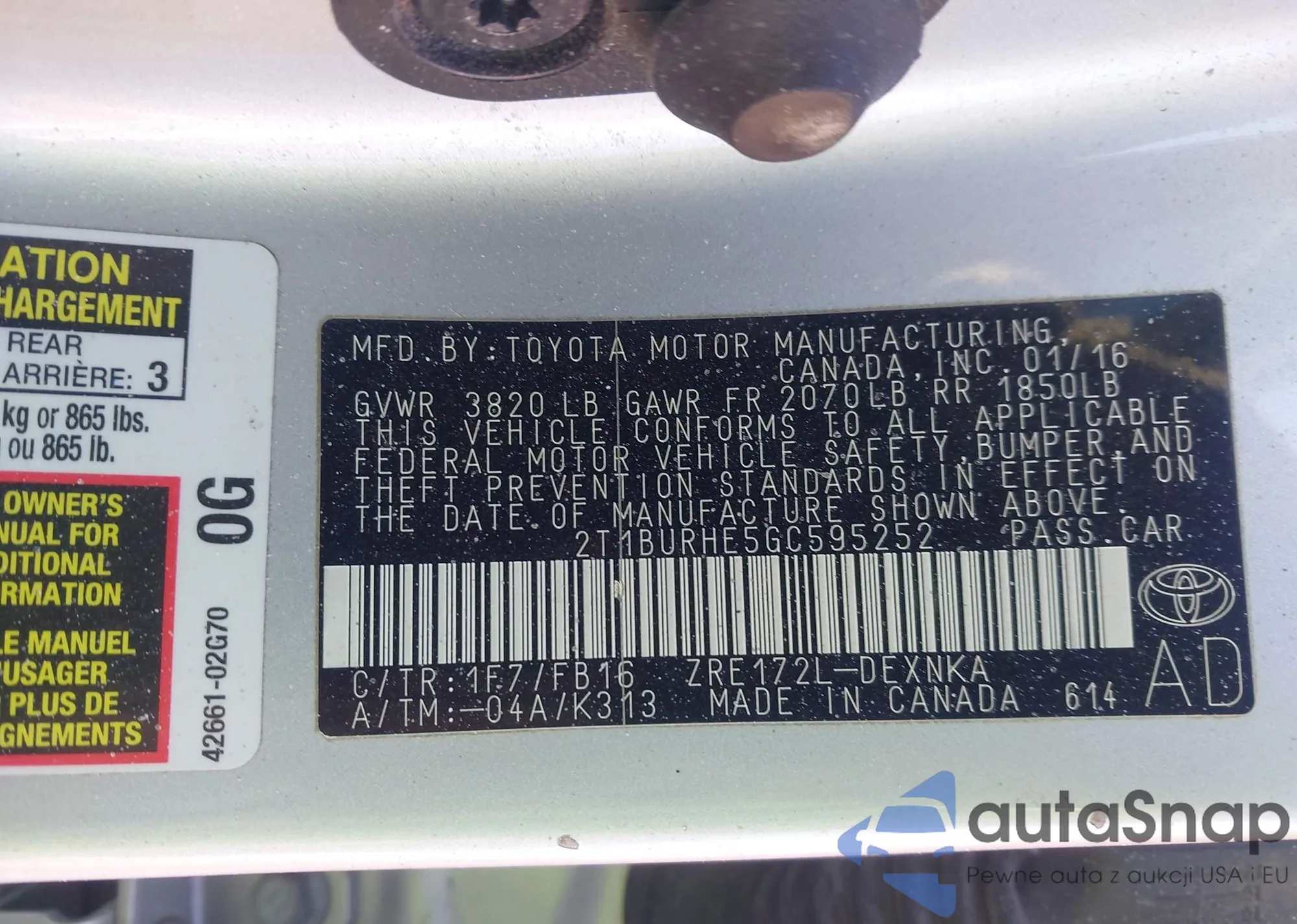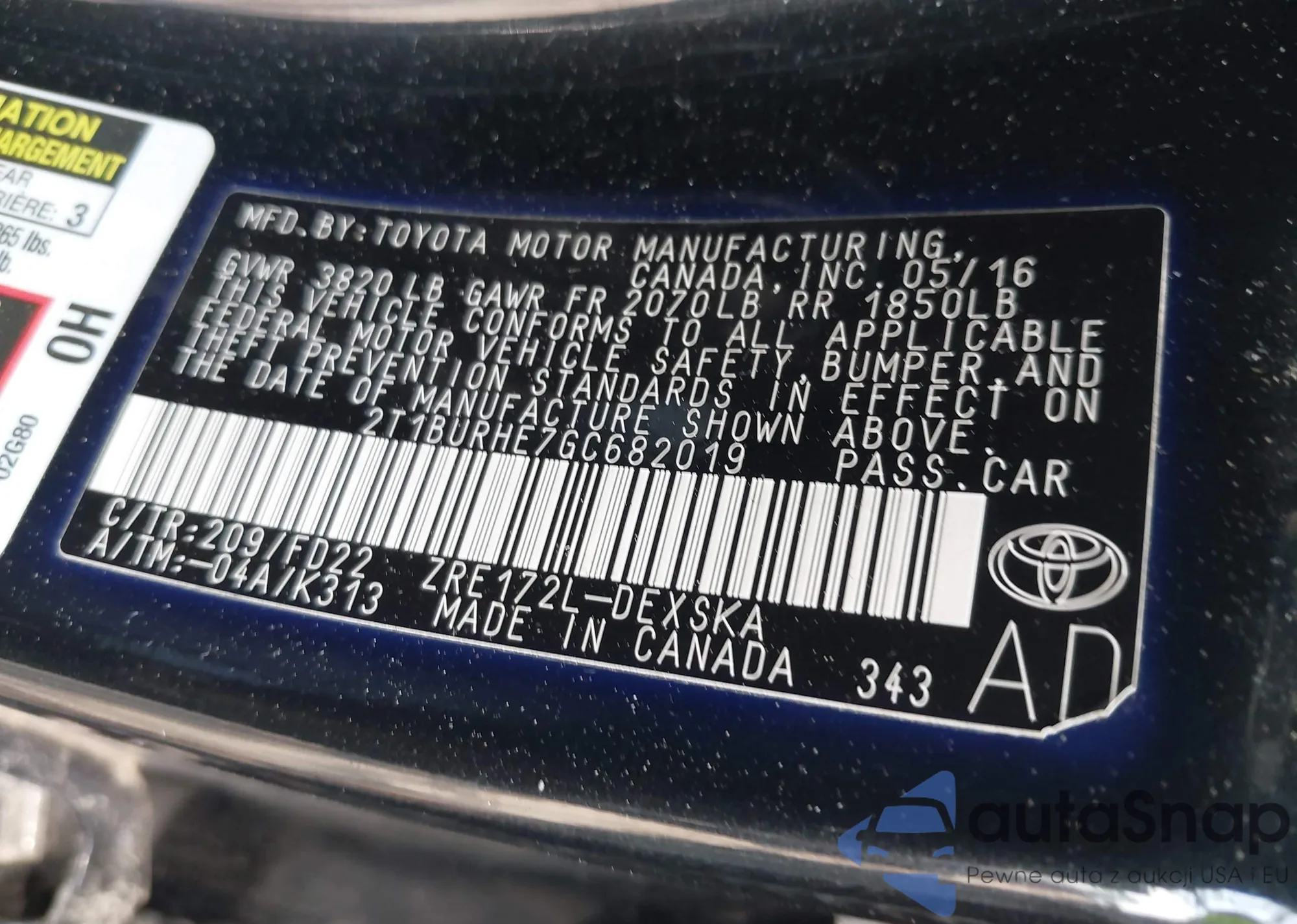 LOT: 44018227 VIN: 2T1BURHE7GC594507