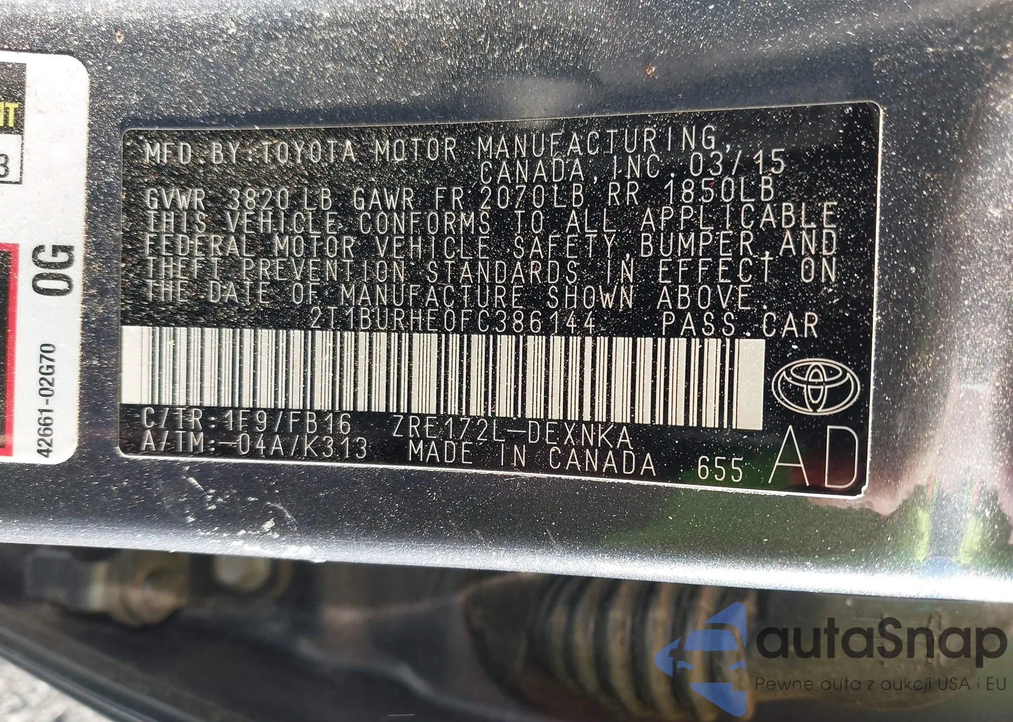 LOT: 68154075 VIN: 2T1BURHE4FC436334