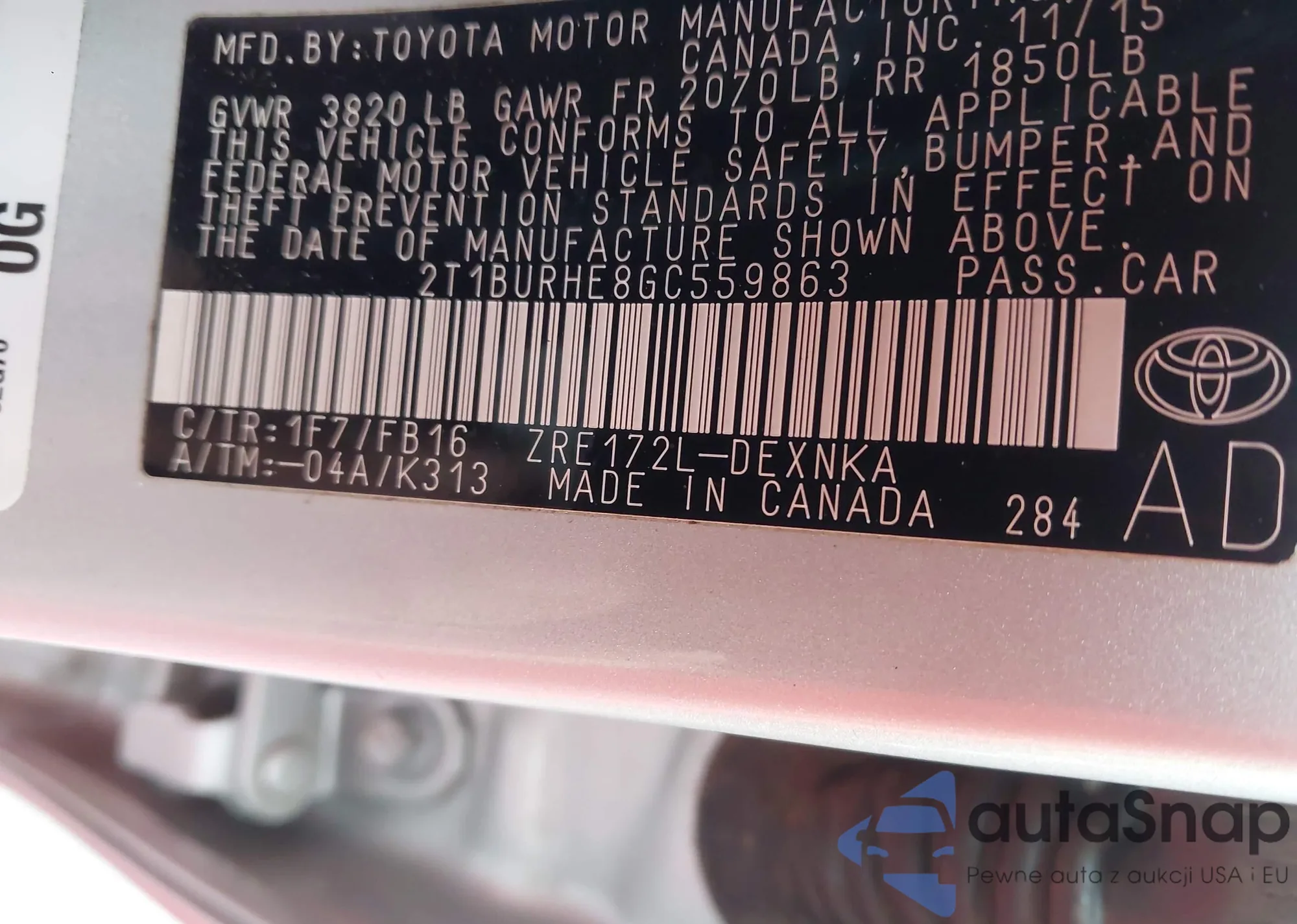• VIN 2T1BURHE8GC559863