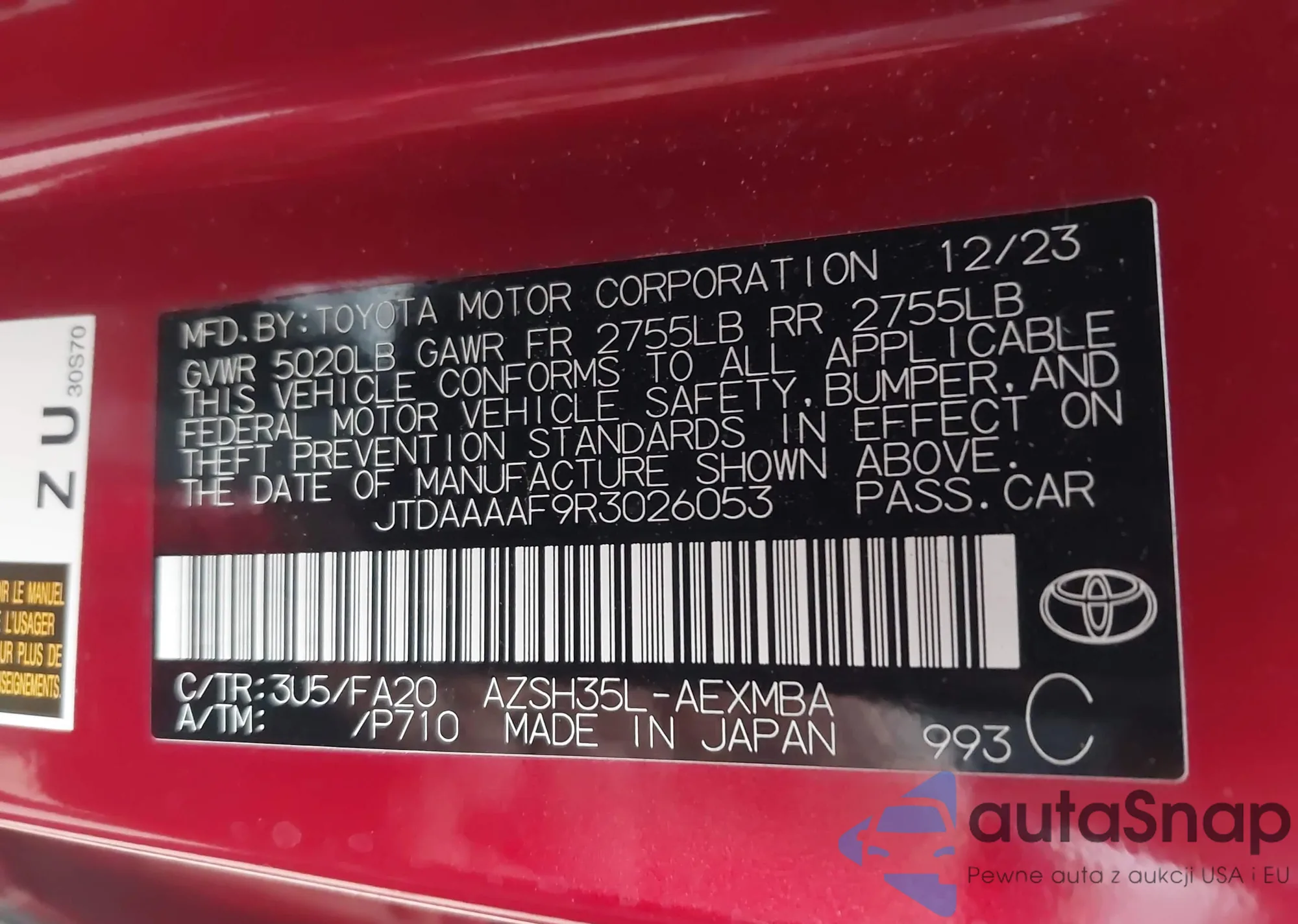 • VIN JTDAAAAF9R3026053