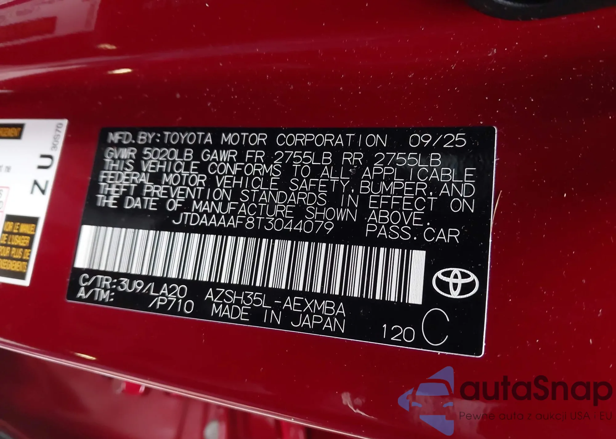 LOT: 44143497 VIN: JTDAAAAF8T3044079