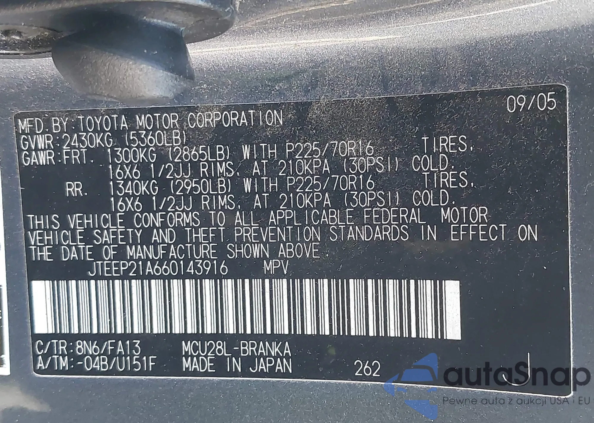 • VIN JTEEP21A660143916