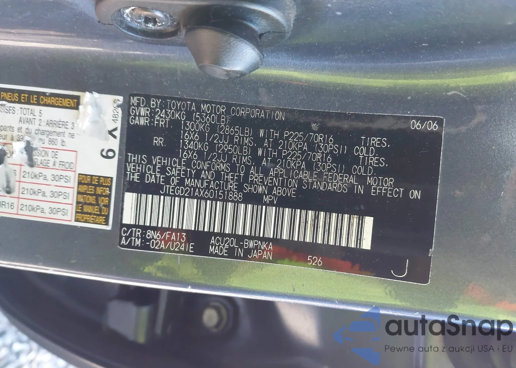 LOT: 44190879 VIN: JTEGD21AX60151888