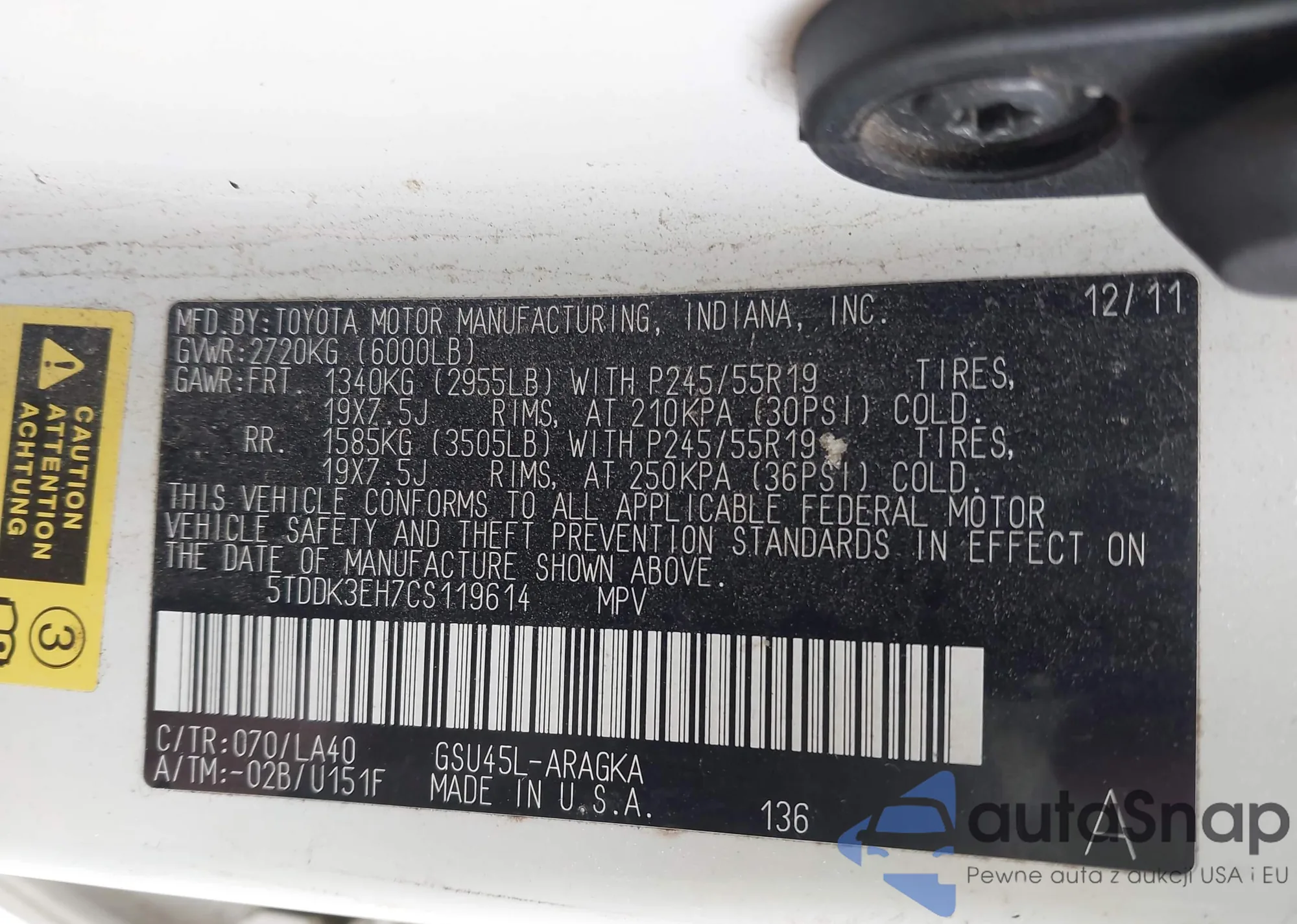 • VIN 5TDDK3EH7CS119614