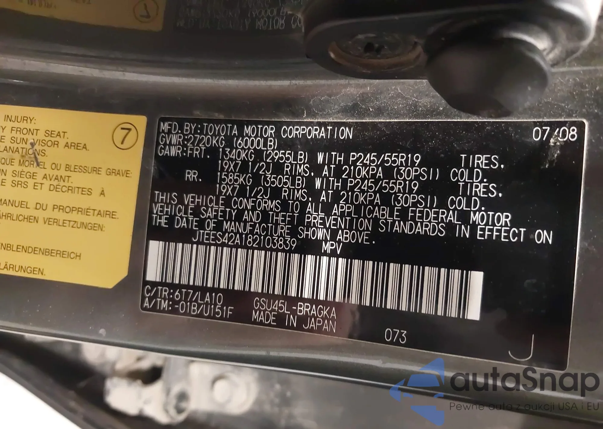 LOT: 44394935 VIN: JTEDS42A082002173