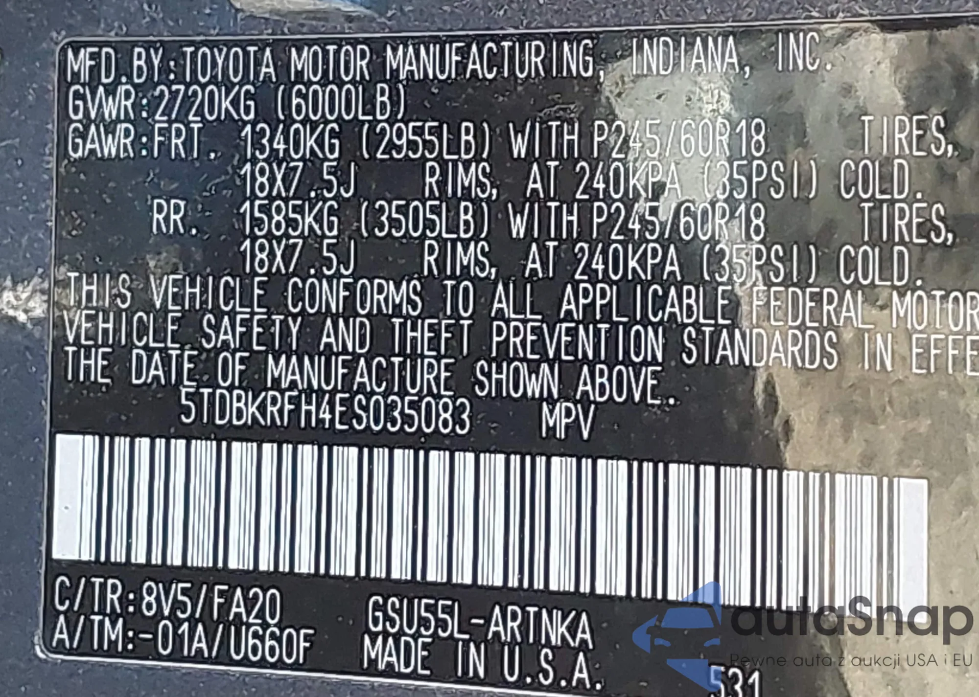 • VIN 5TDBKRFH4ES035083