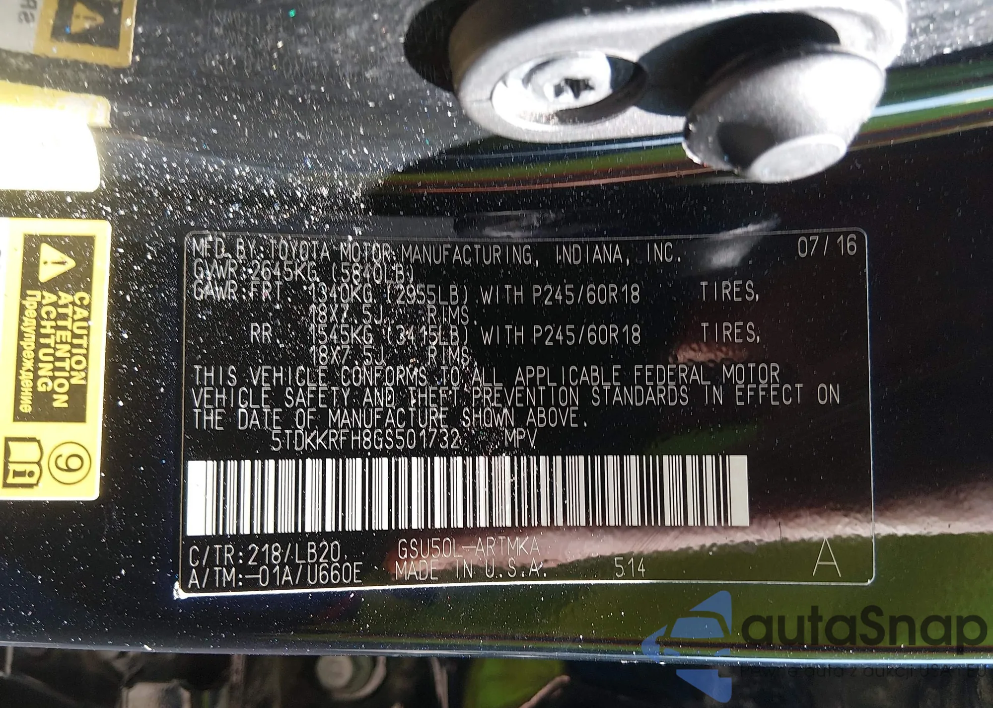 LOT: 44464320 VIN: 5TDKKRFH8GS501732