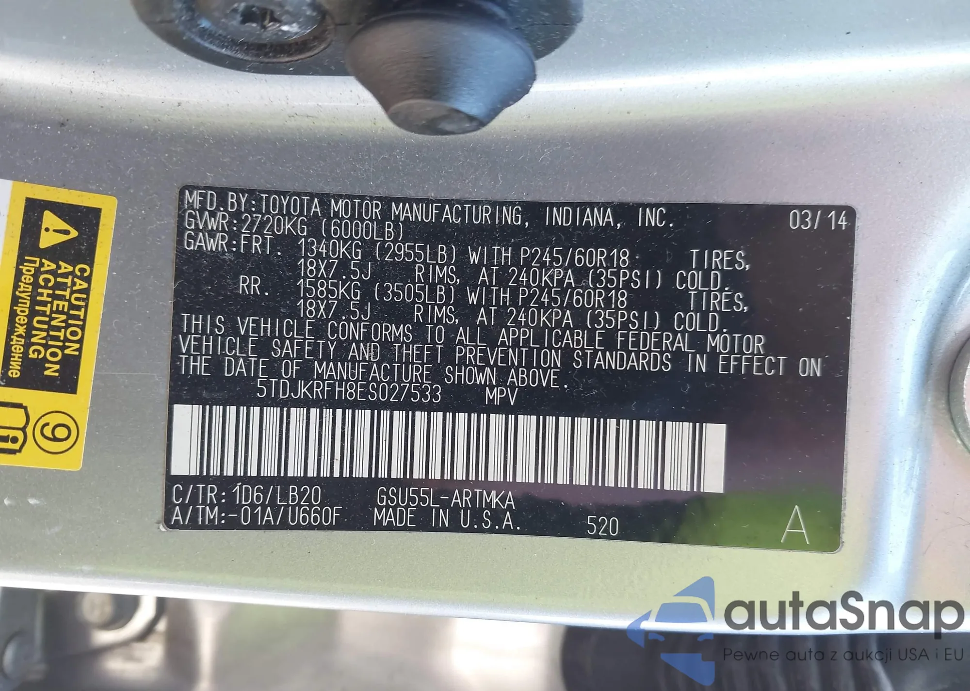 • VIN 5TDJKRFH8ES027533