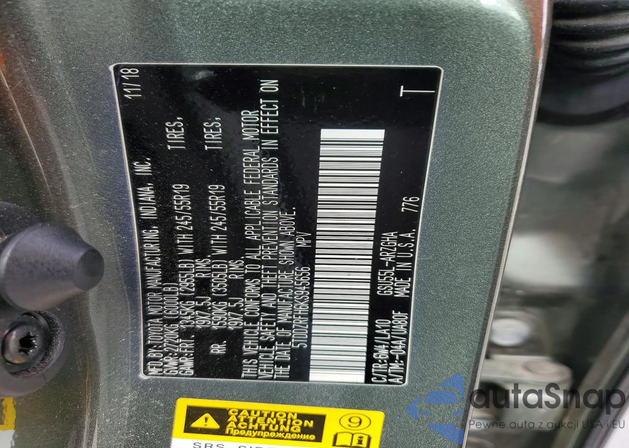 • VIN 5TDDZRFH6KS945656