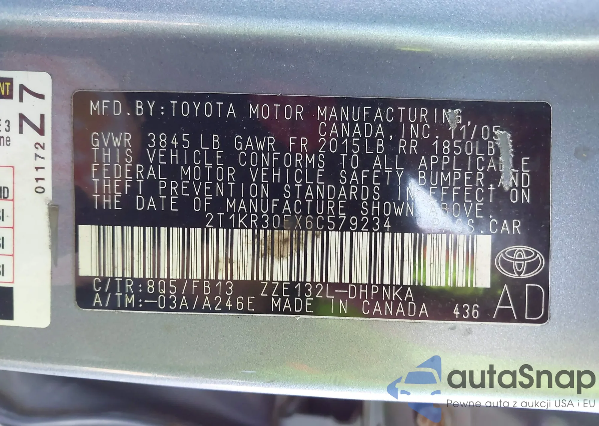 • VIN 2T1KR30EX6C579234