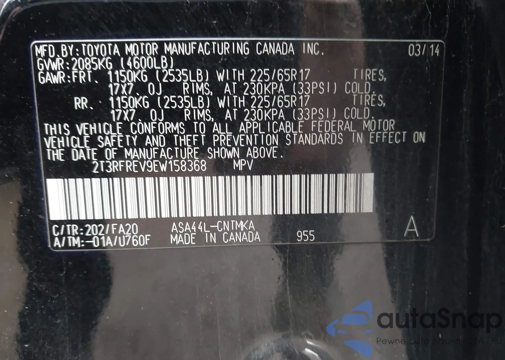• VIN 2T3RFREV9EW158368