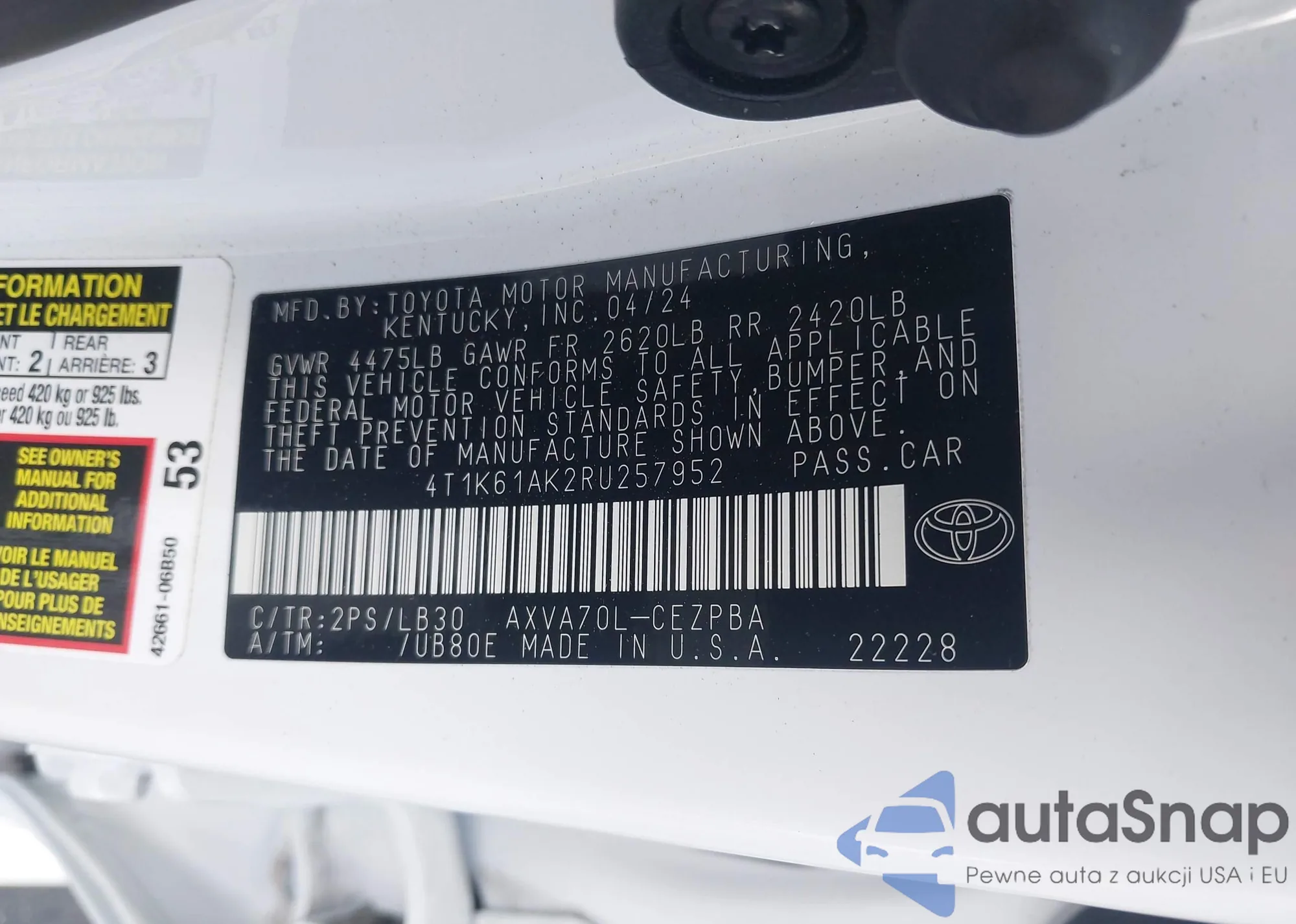 • VIN 4T1K61AK2RU257952