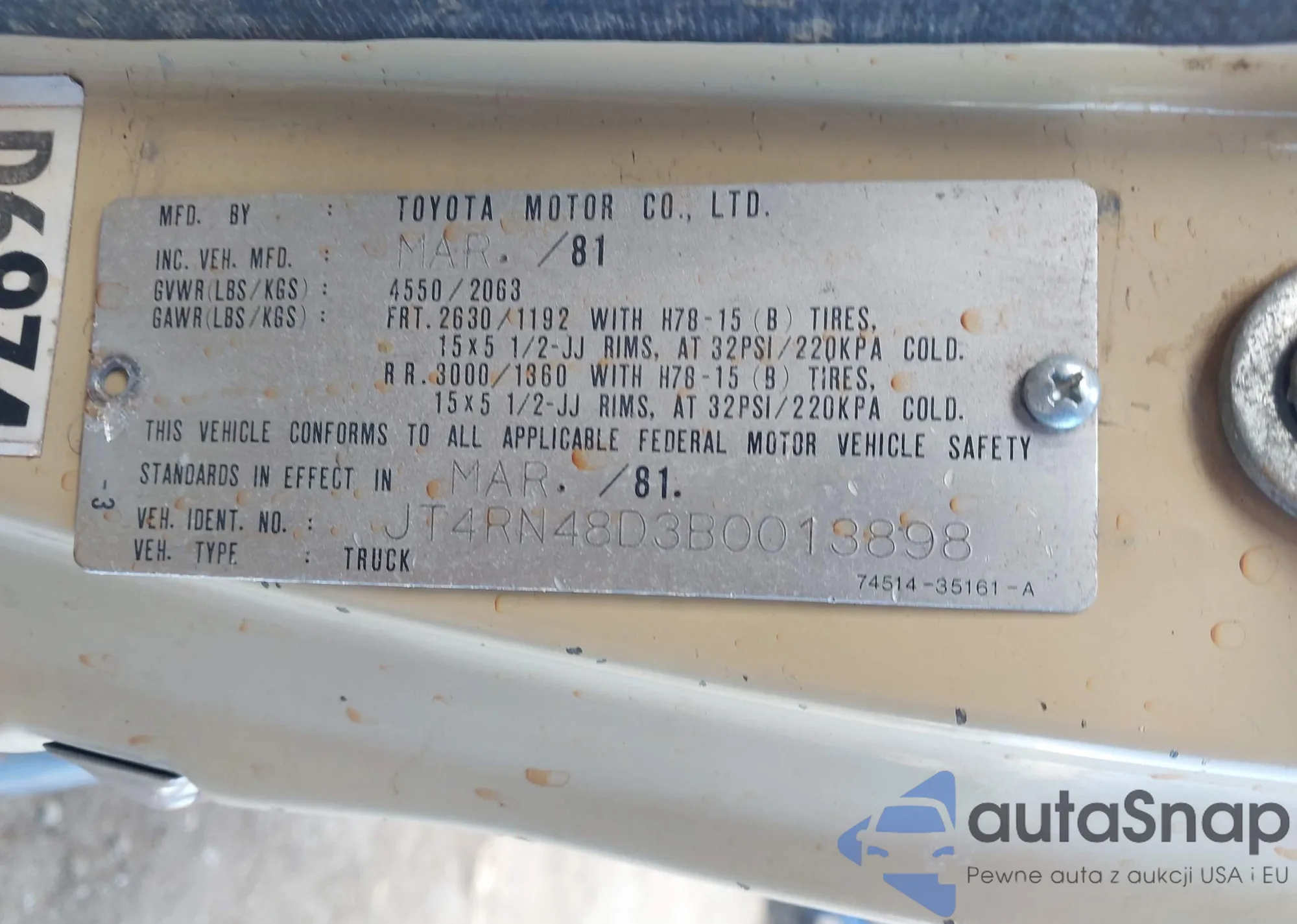 1981 Toyota Pickup Rn48 из США, поврежденный, VIN JT4RN48D3B0013898
