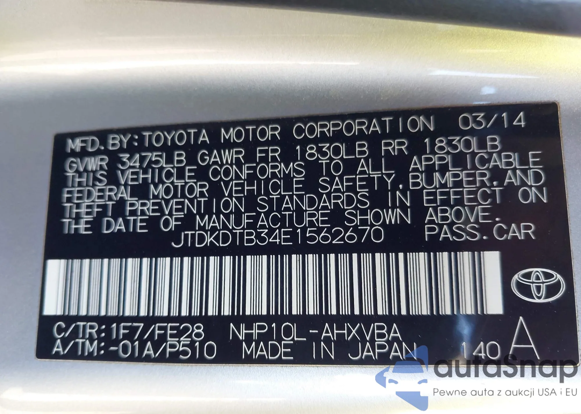 • VIN JTDKDTB34E1562670