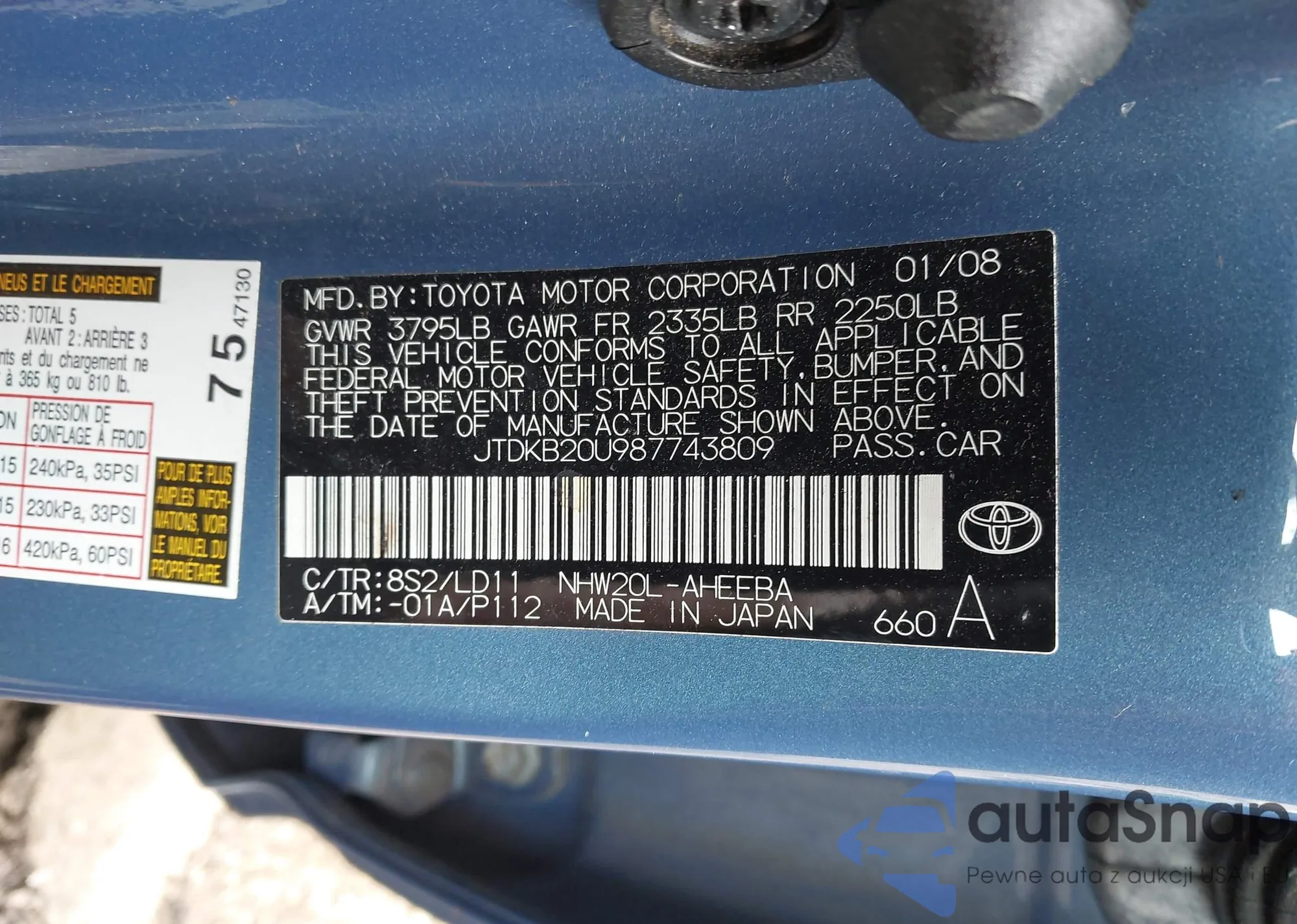 LOT: 44608686 VIN: JTDKB20U987743809