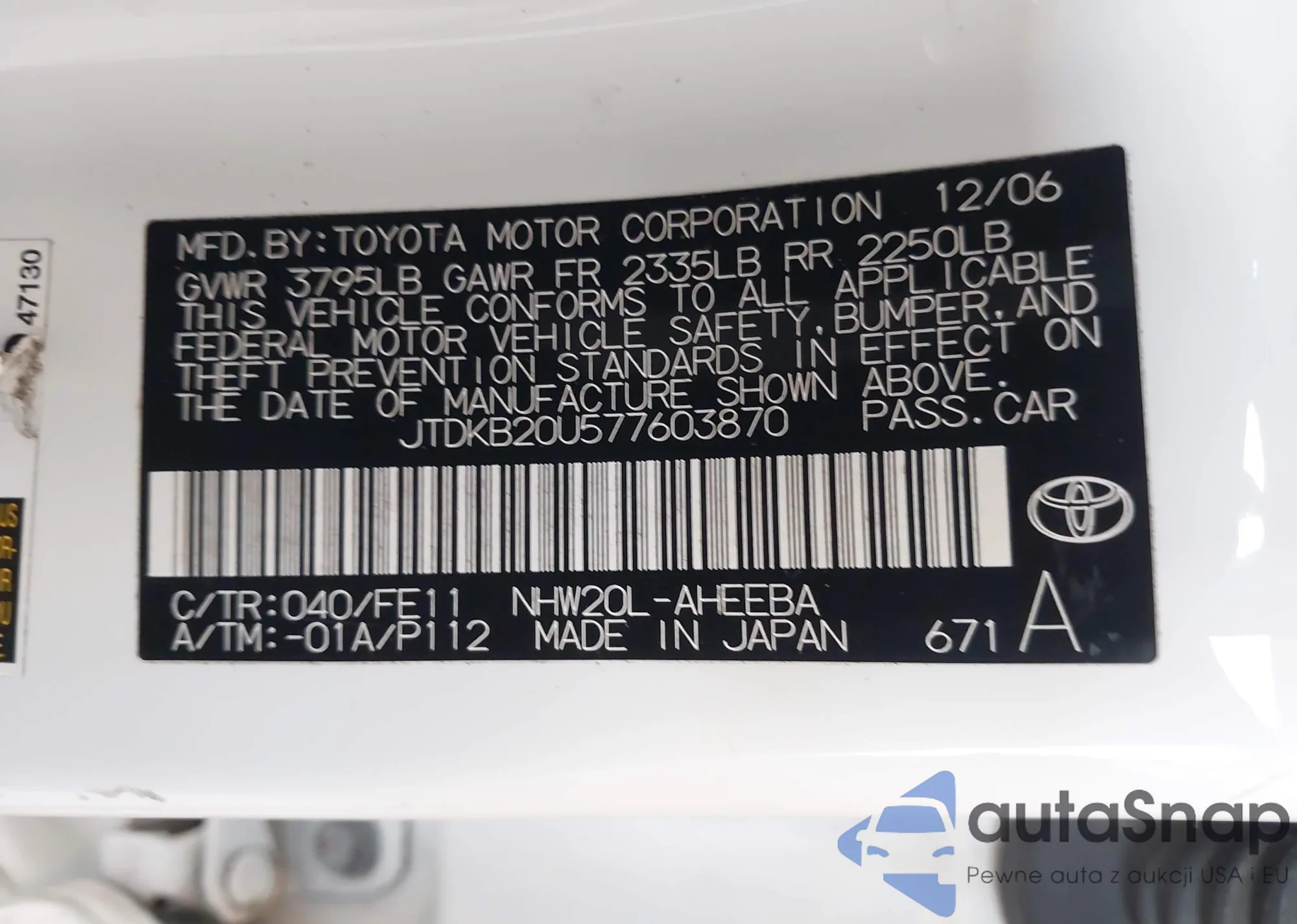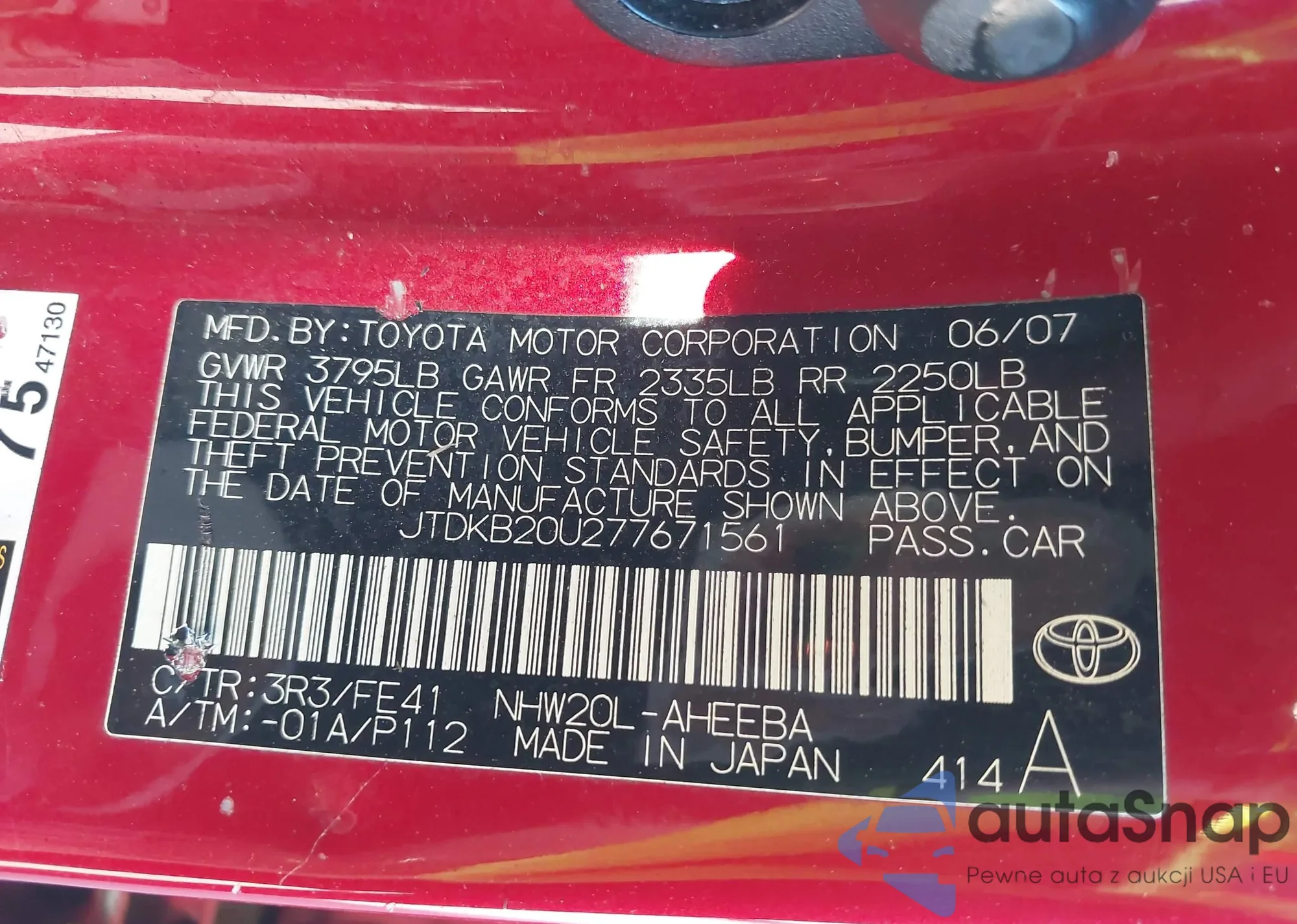 LOT: 44165381 VIN: JTDKB20U277671561