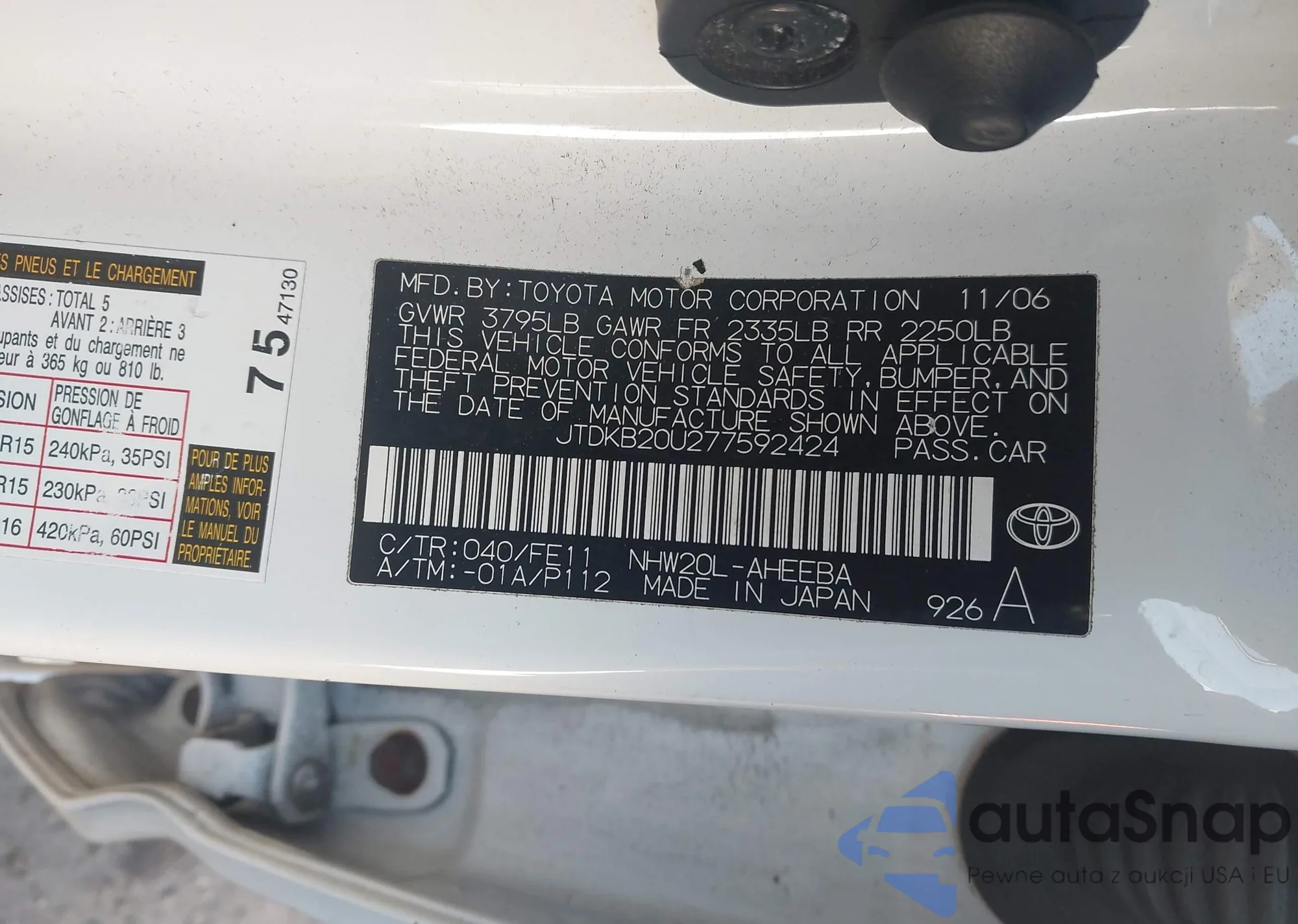 LOT: 44159806 VIN: JTDKB20U277592424
