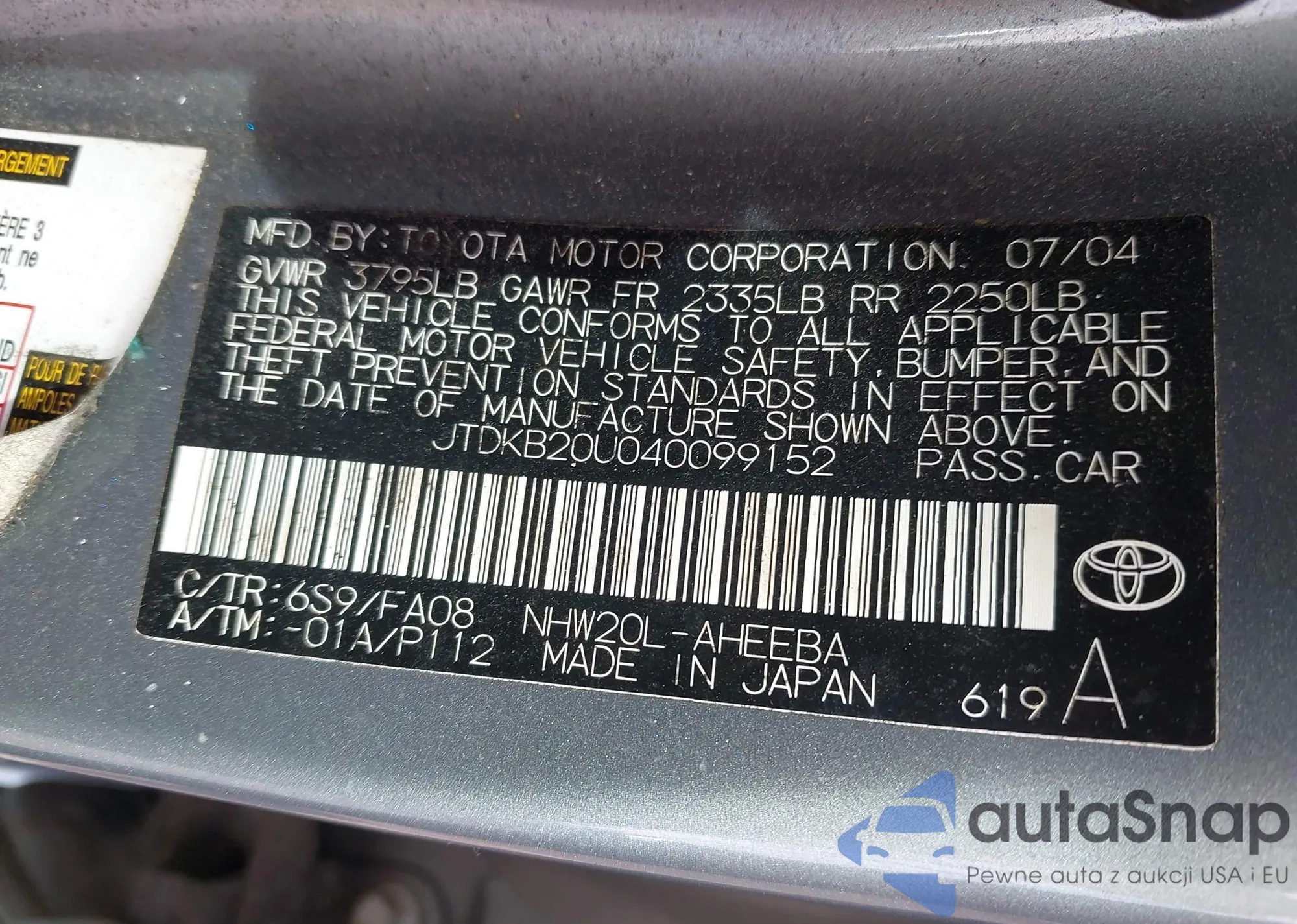 LOT: 44080282 VIN: JTDKB20U040099152