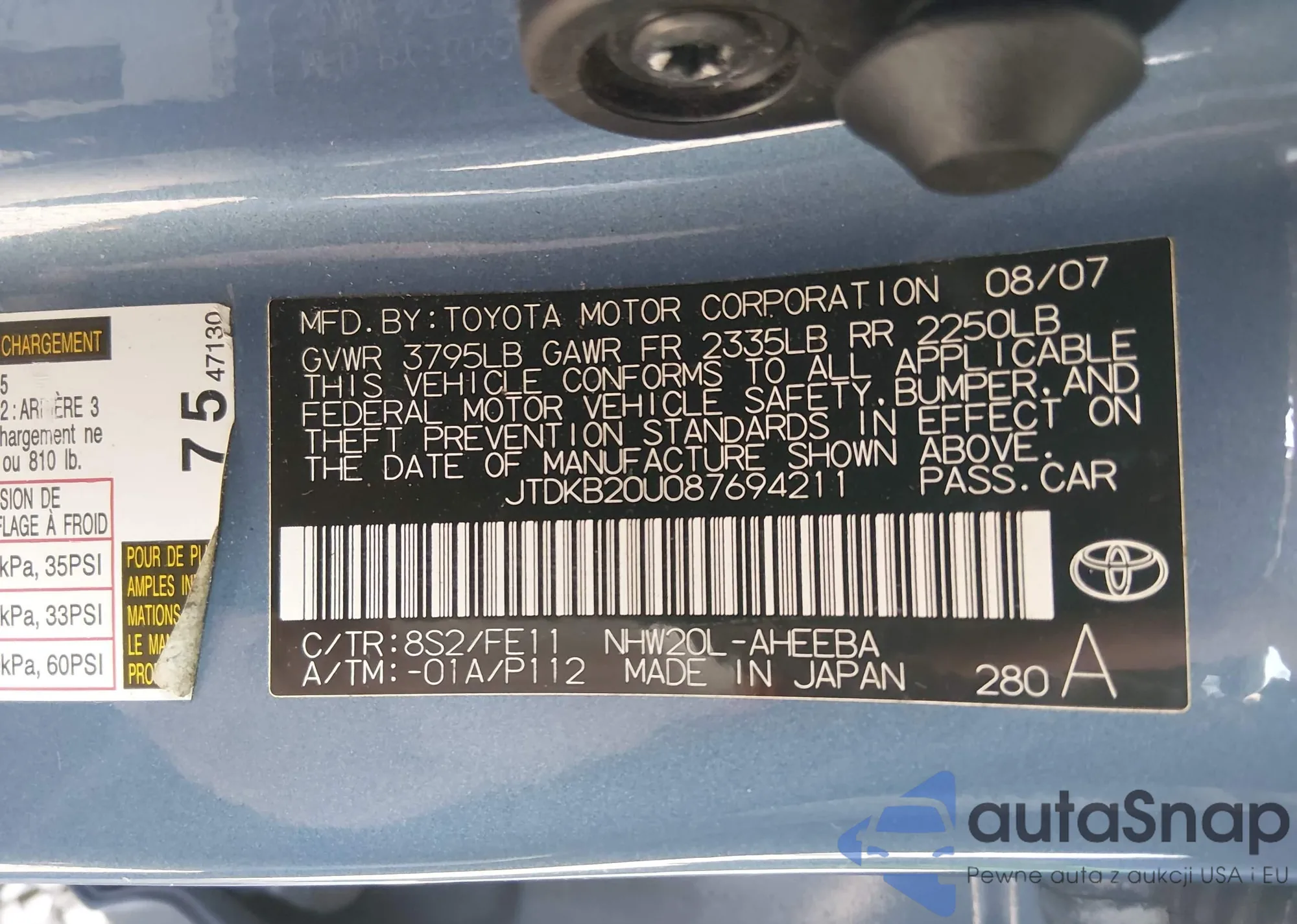 LOT: 44332281 VIN: JTDKB20U087694211