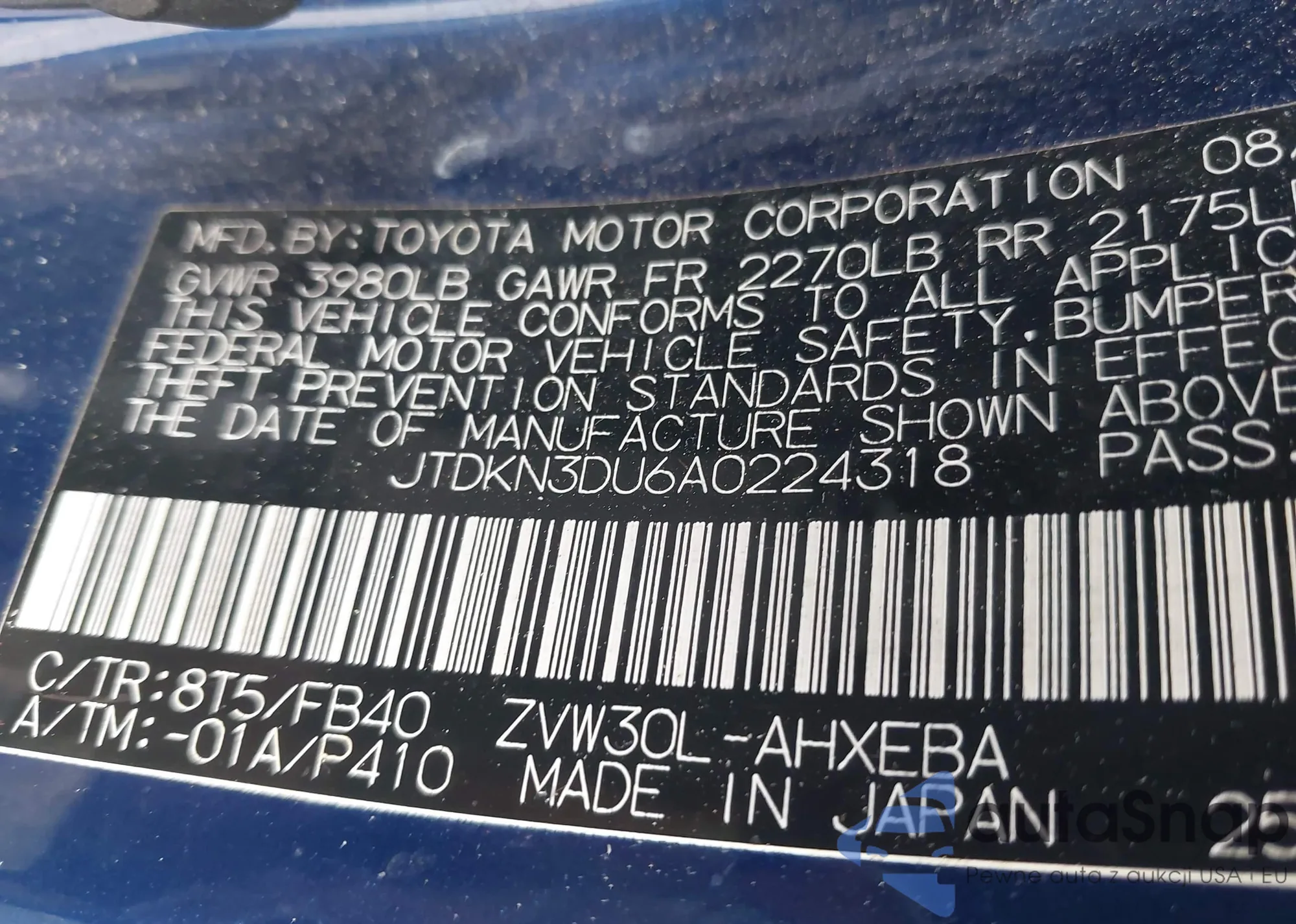 • VIN JTDKN3DU6A0224318