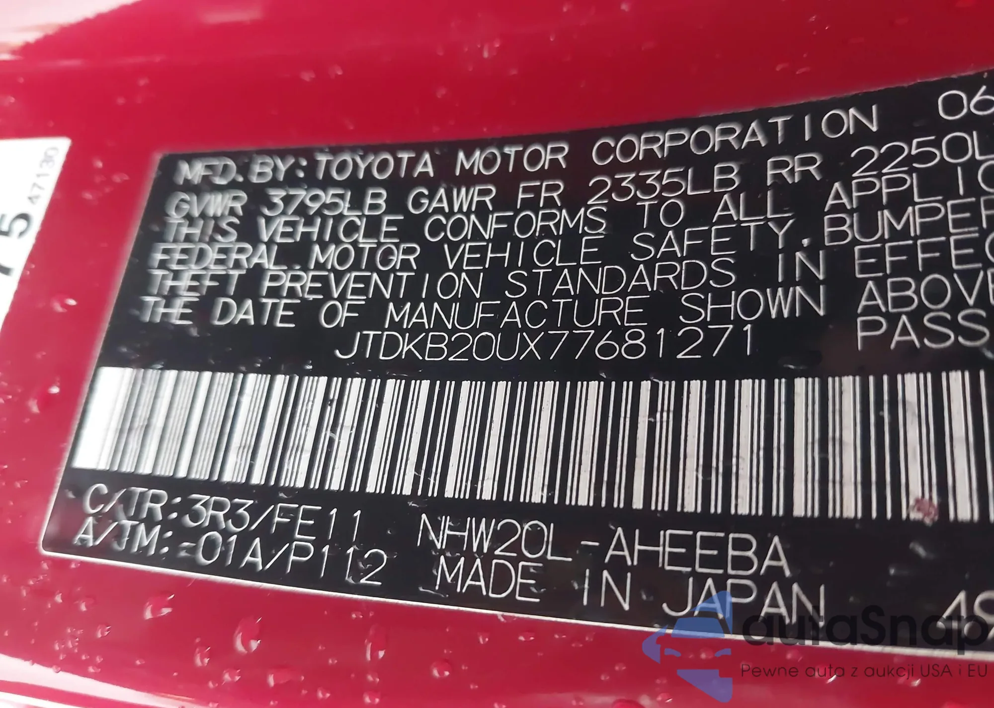 • VIN JTDKB20UX77681271