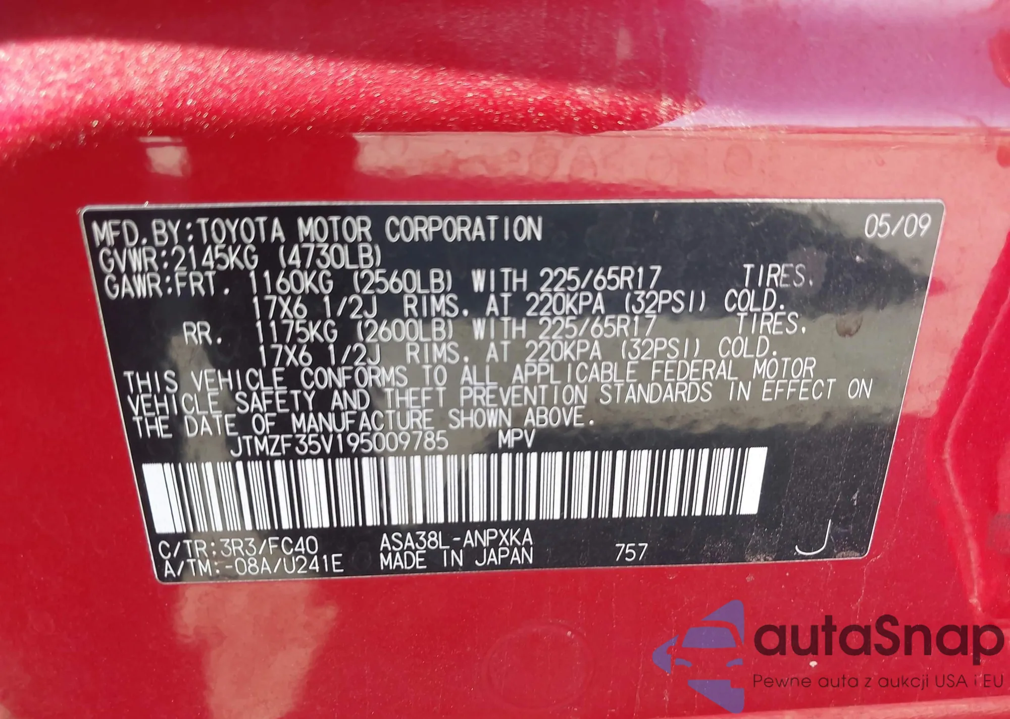 LOT: 44503952 VIN: JTMZF35V195009785