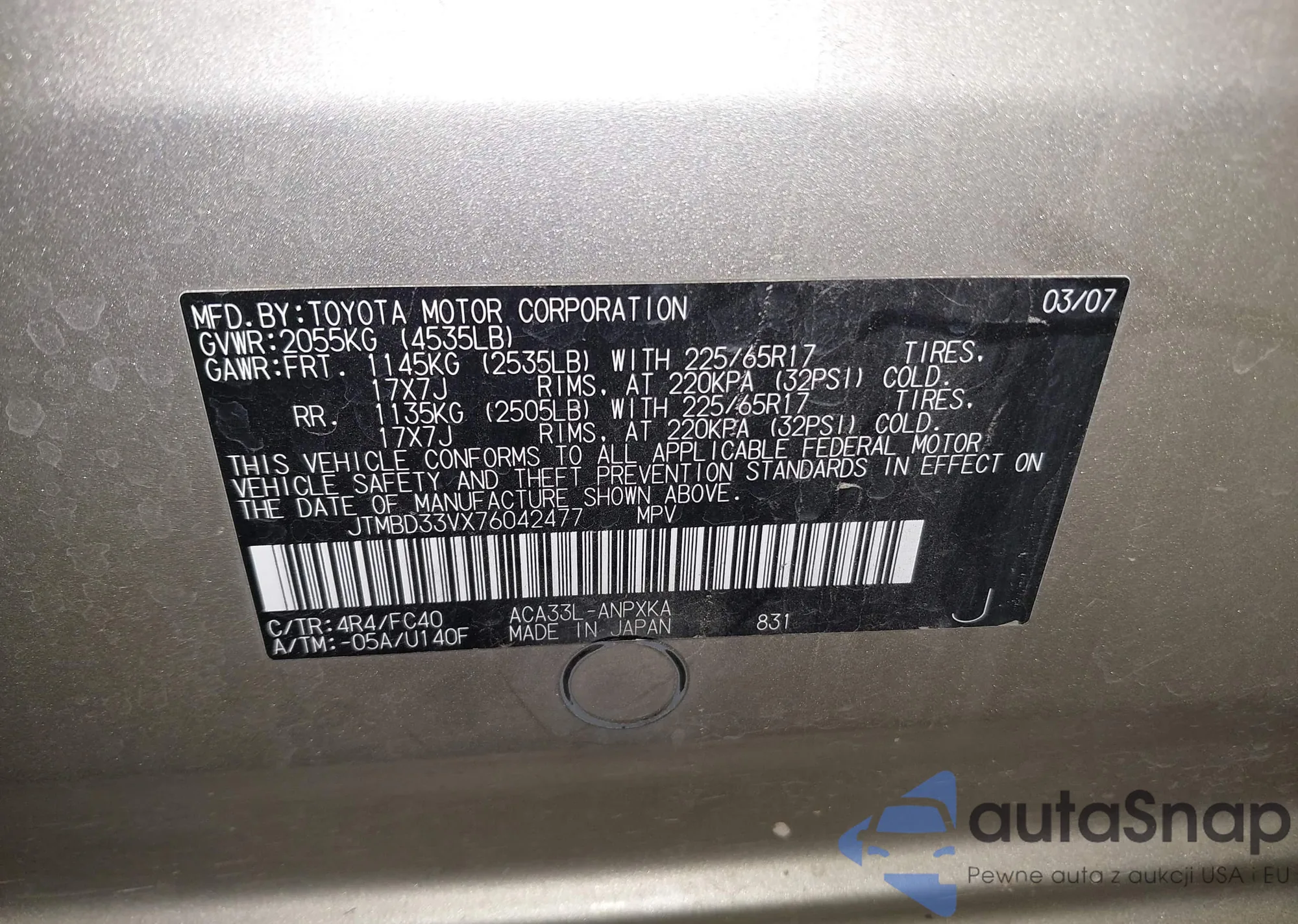 LOT: 43176683 VIN: JTMBD33VX76042477
