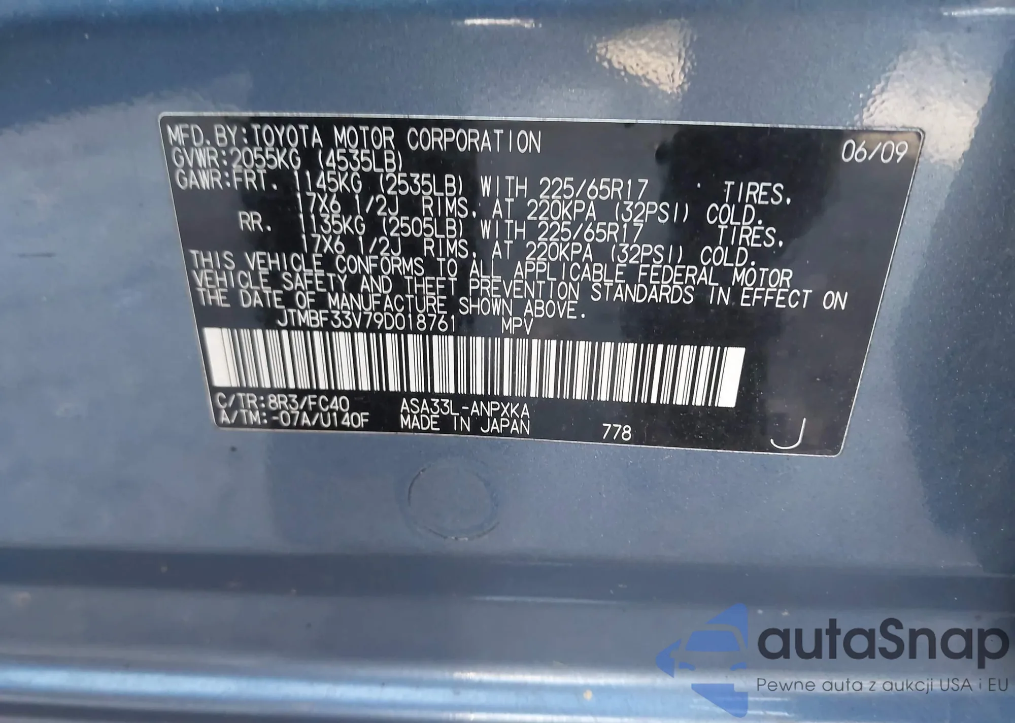 • VIN JTMBF33V79D018761