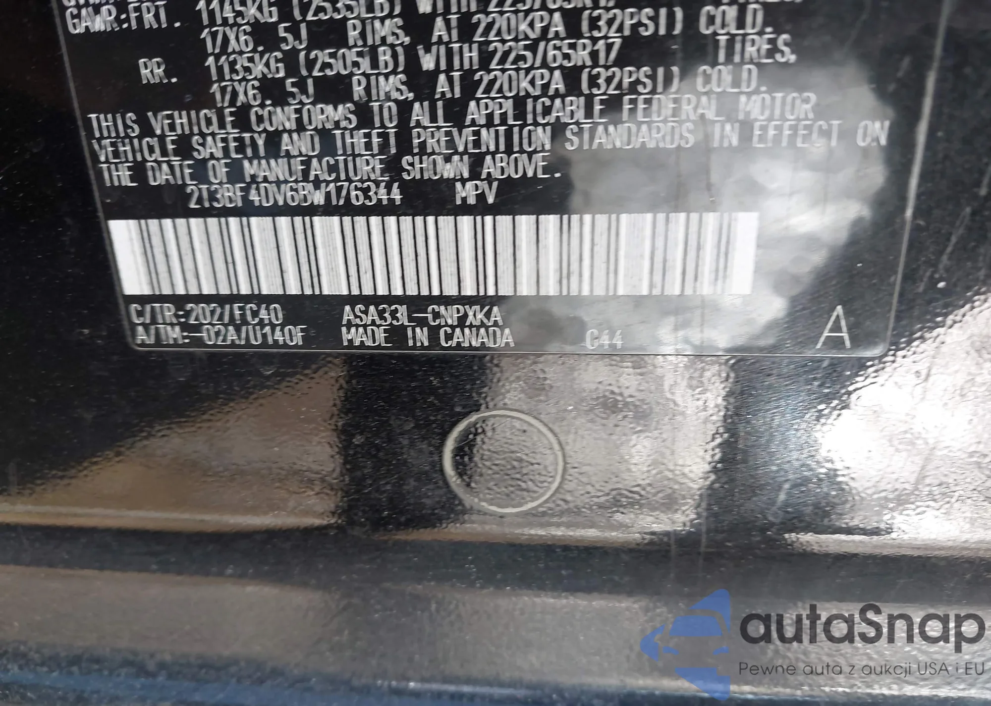 • VIN 2T3BF4DV6BW110490