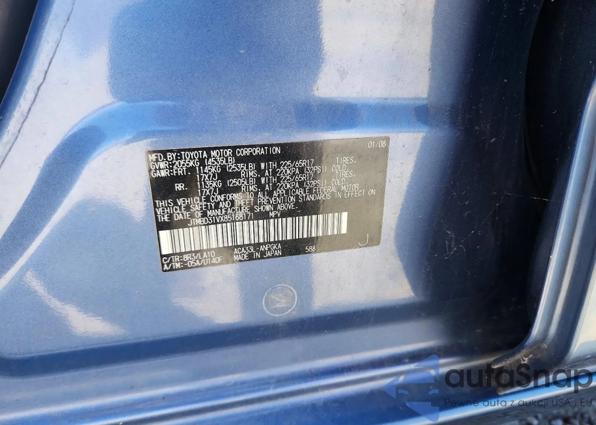 • VIN JTMBD31VX85168171