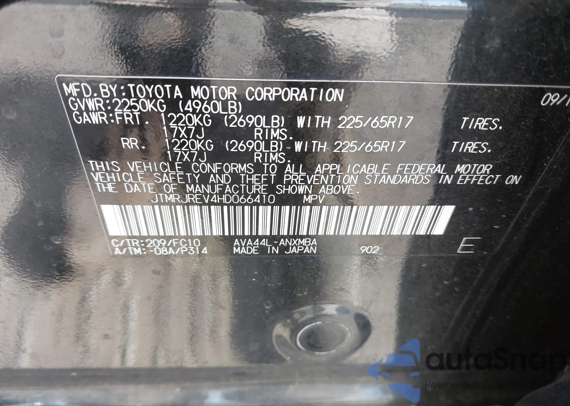 LOT: 44110711 VIN: JTMRJREV4HD066410