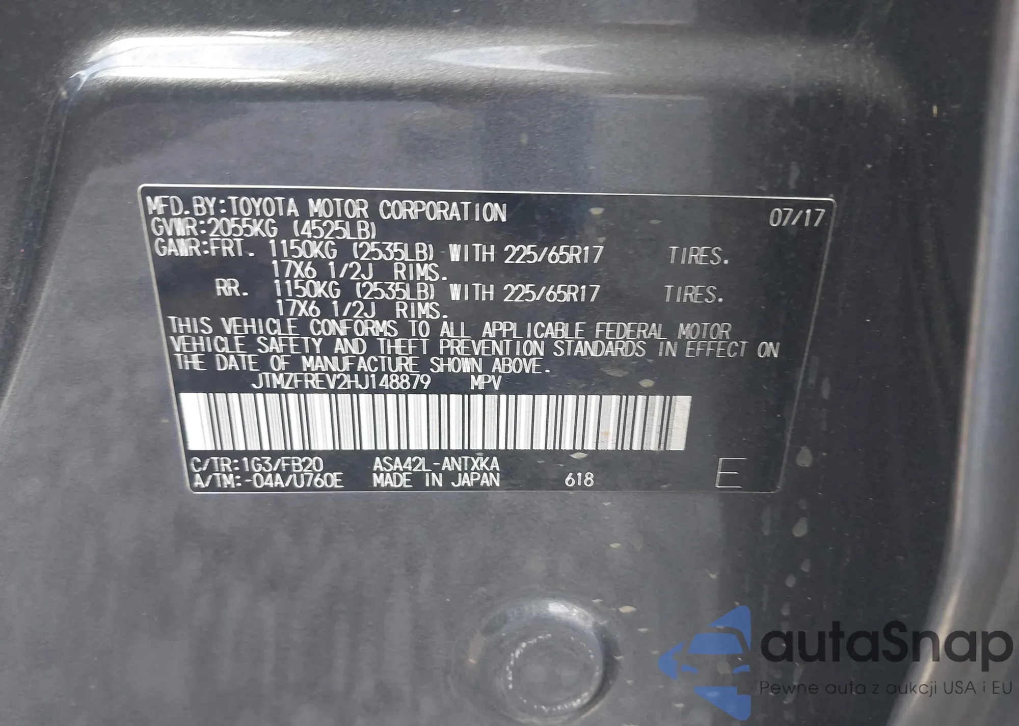 LOT: 43142670 VIN: JTMZFREV2HJ150017
