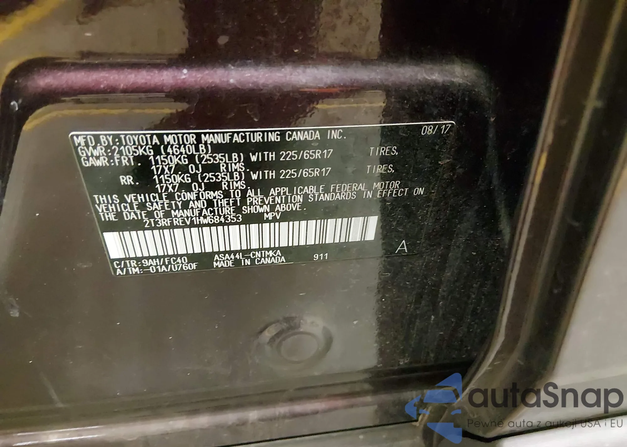 • VIN 2T3RFREV1HW684353