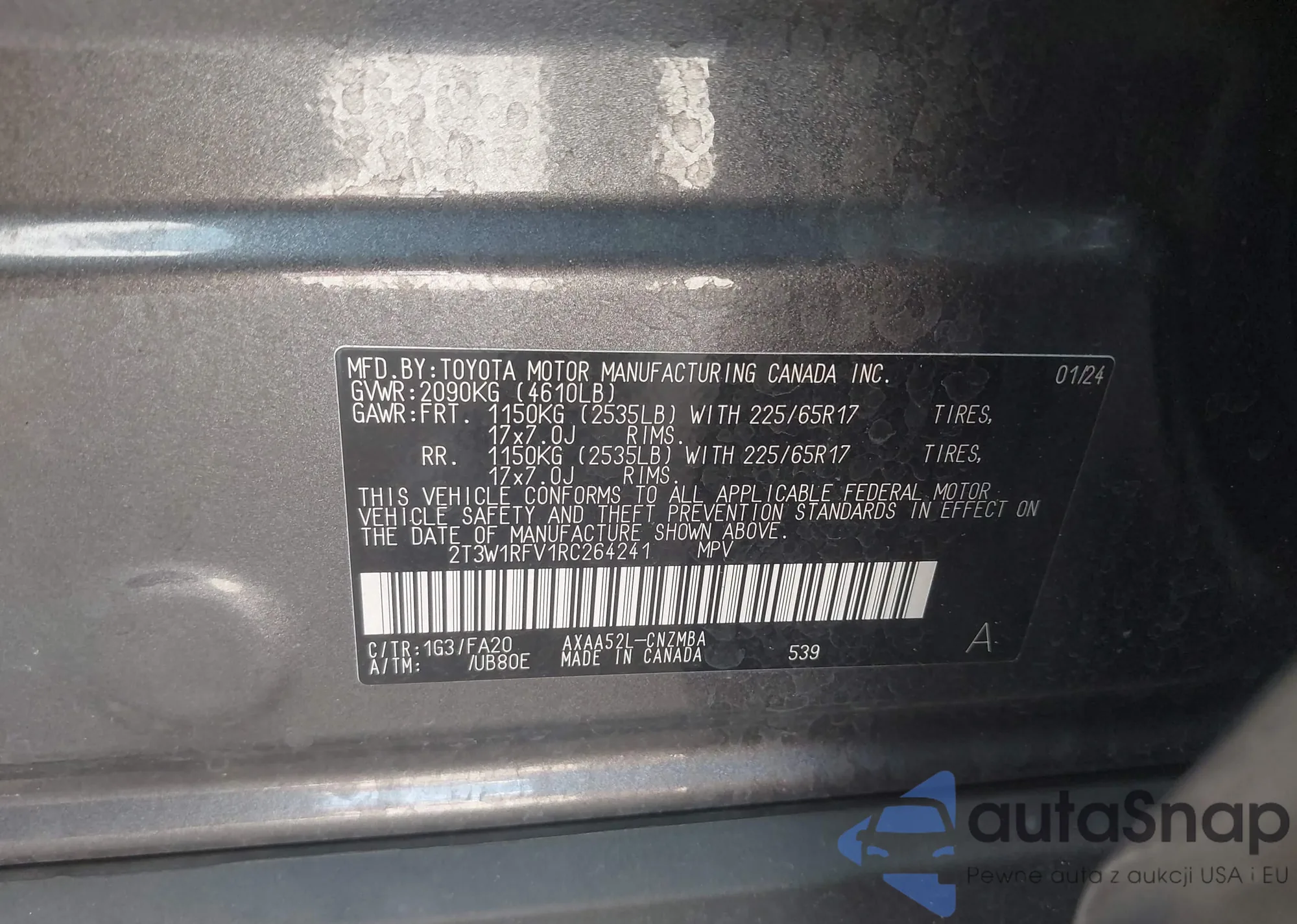 LOT: 43951609 VIN: 2T3W1RFV1RC264241