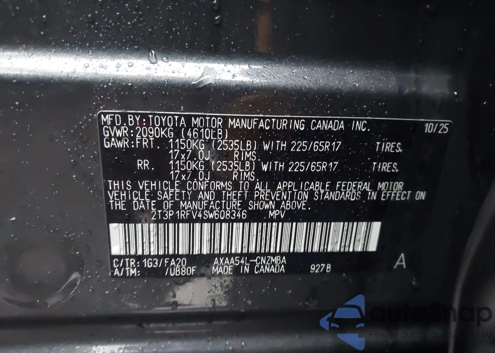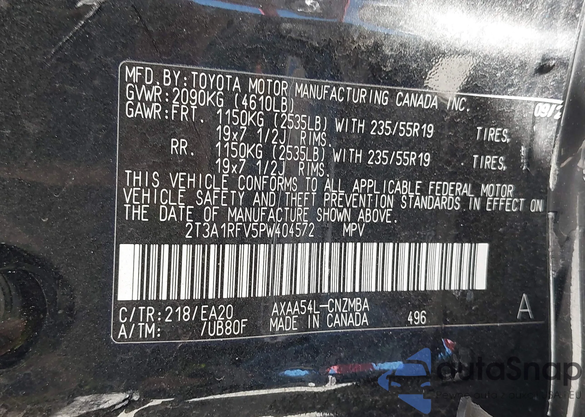 • VIN 2T3A1RFV5PW404572