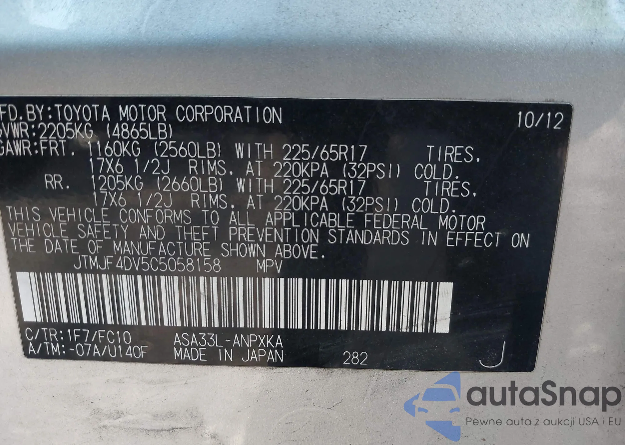 • VIN JTMJF4DV5C5058158
