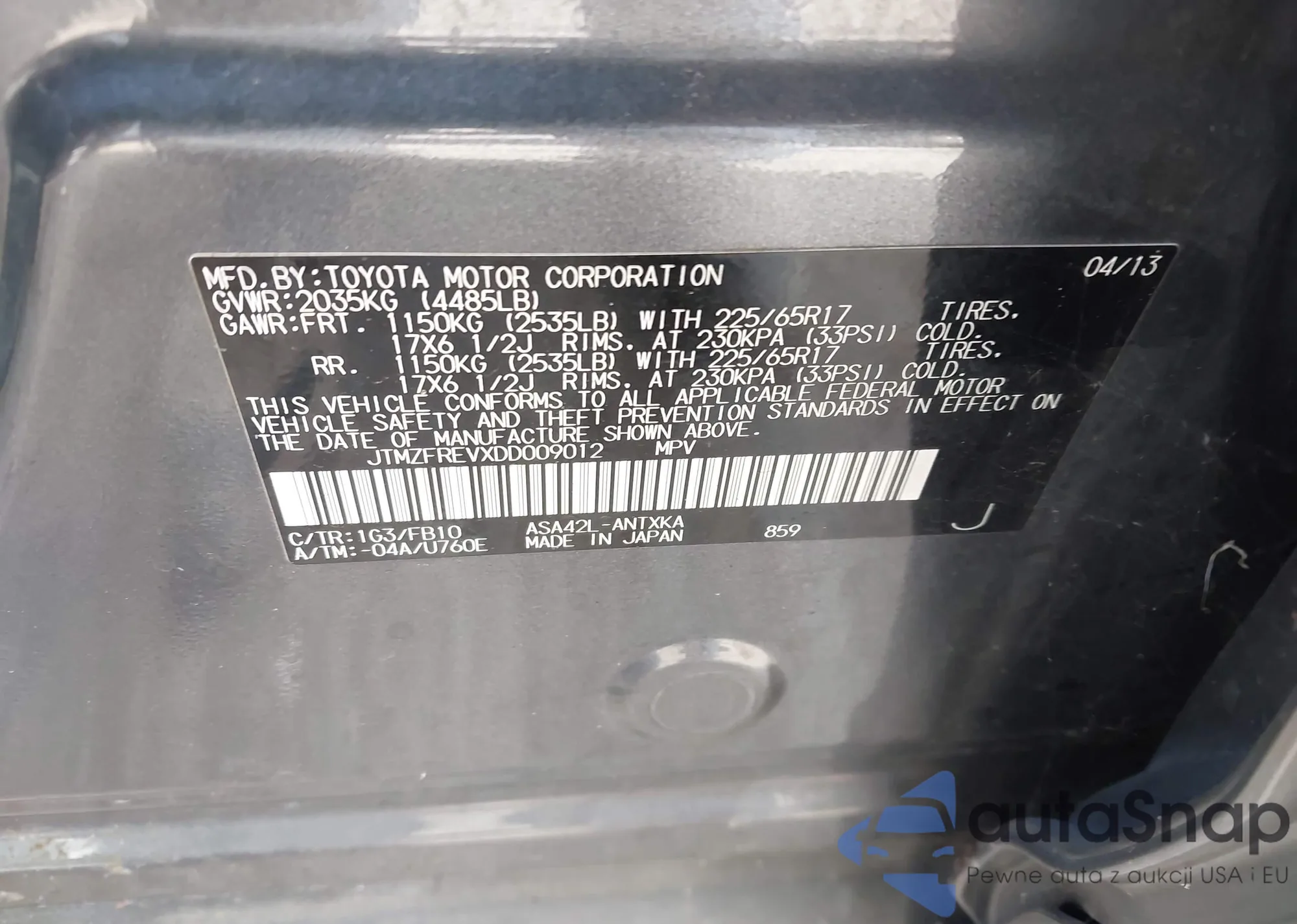 LOT: 44361845 VIN: JTMZF4DV2A5026400