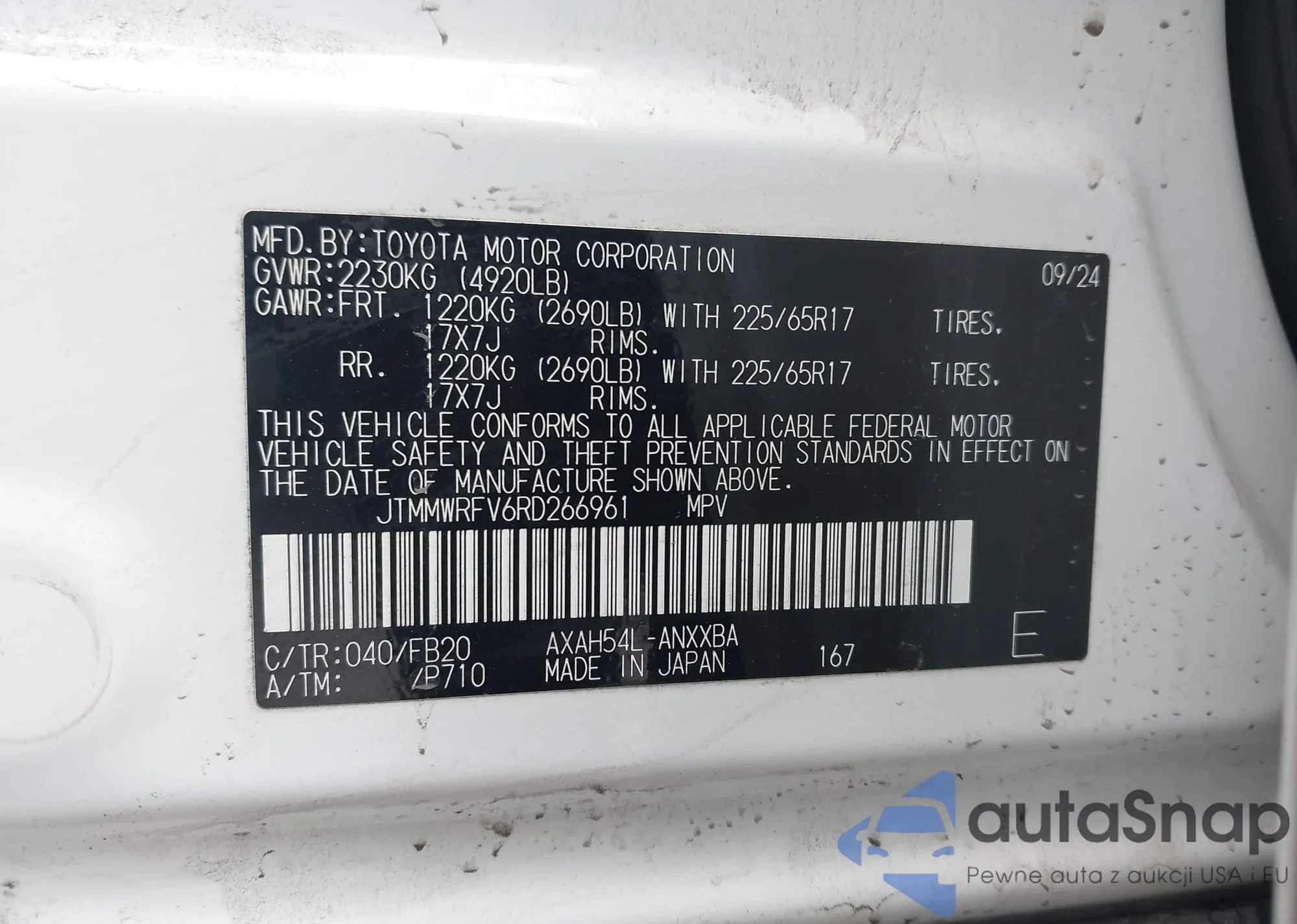 • VIN JTMMWRFV6RD266961