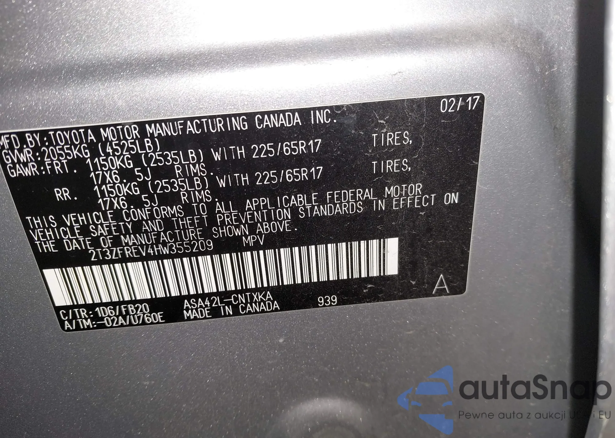 • VIN 2T3ZFREV4HW355209