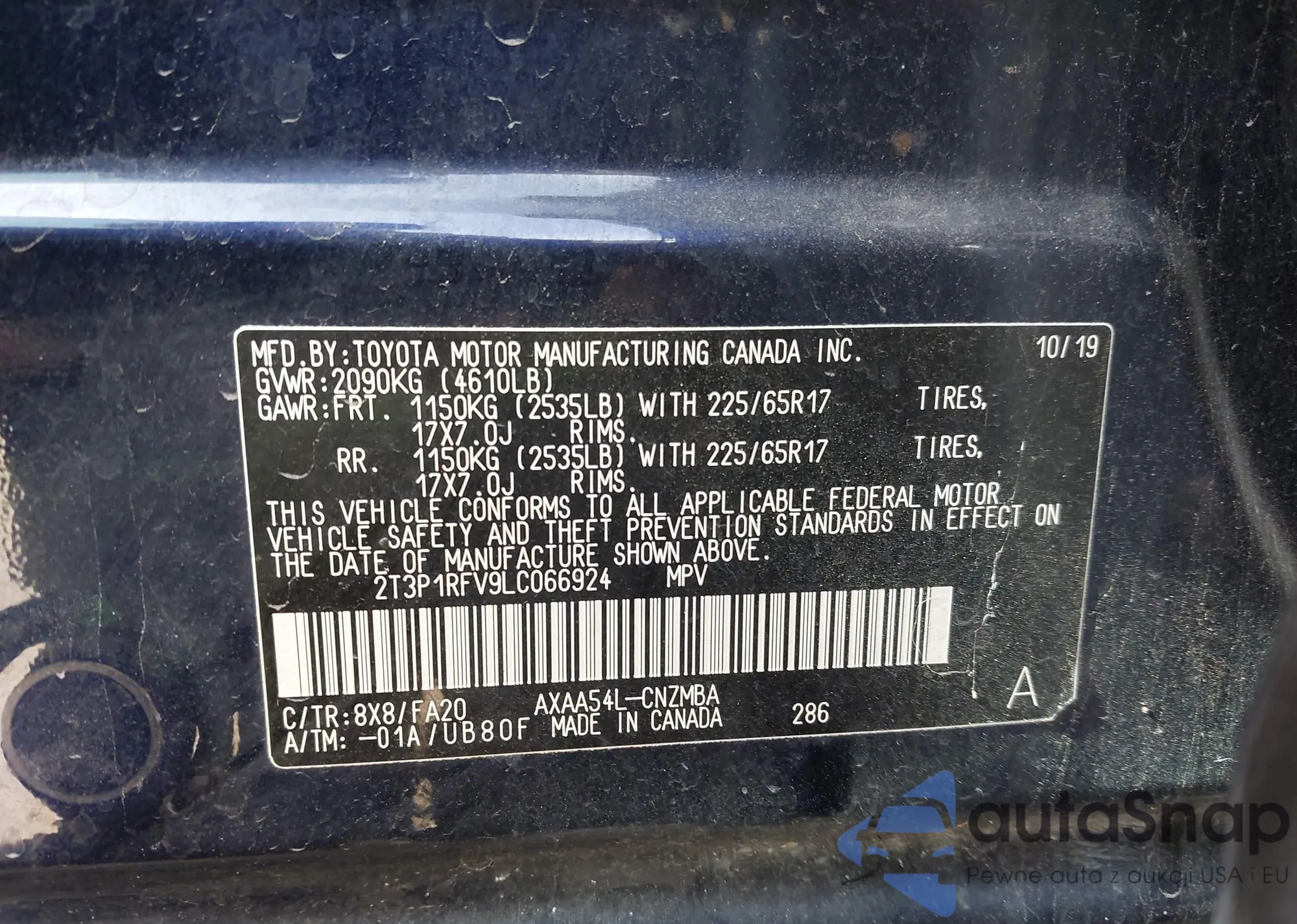 LOT: 79699555 VIN: JTMN1RFVXLJ037078