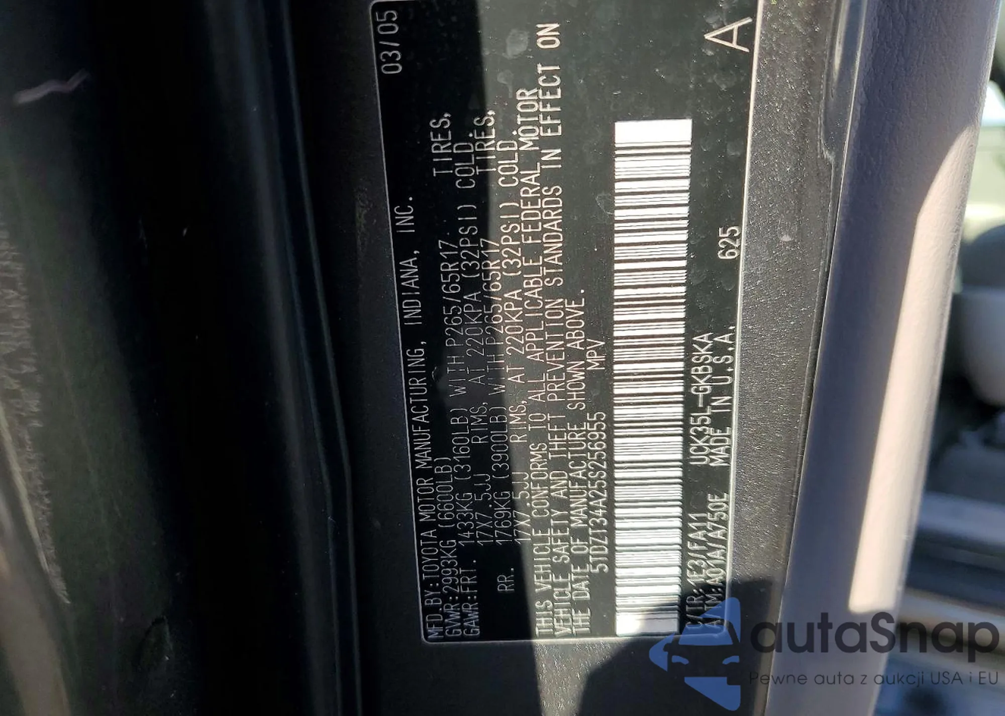 LOT: 76826905 VIN: 5TDZT34A25S256955