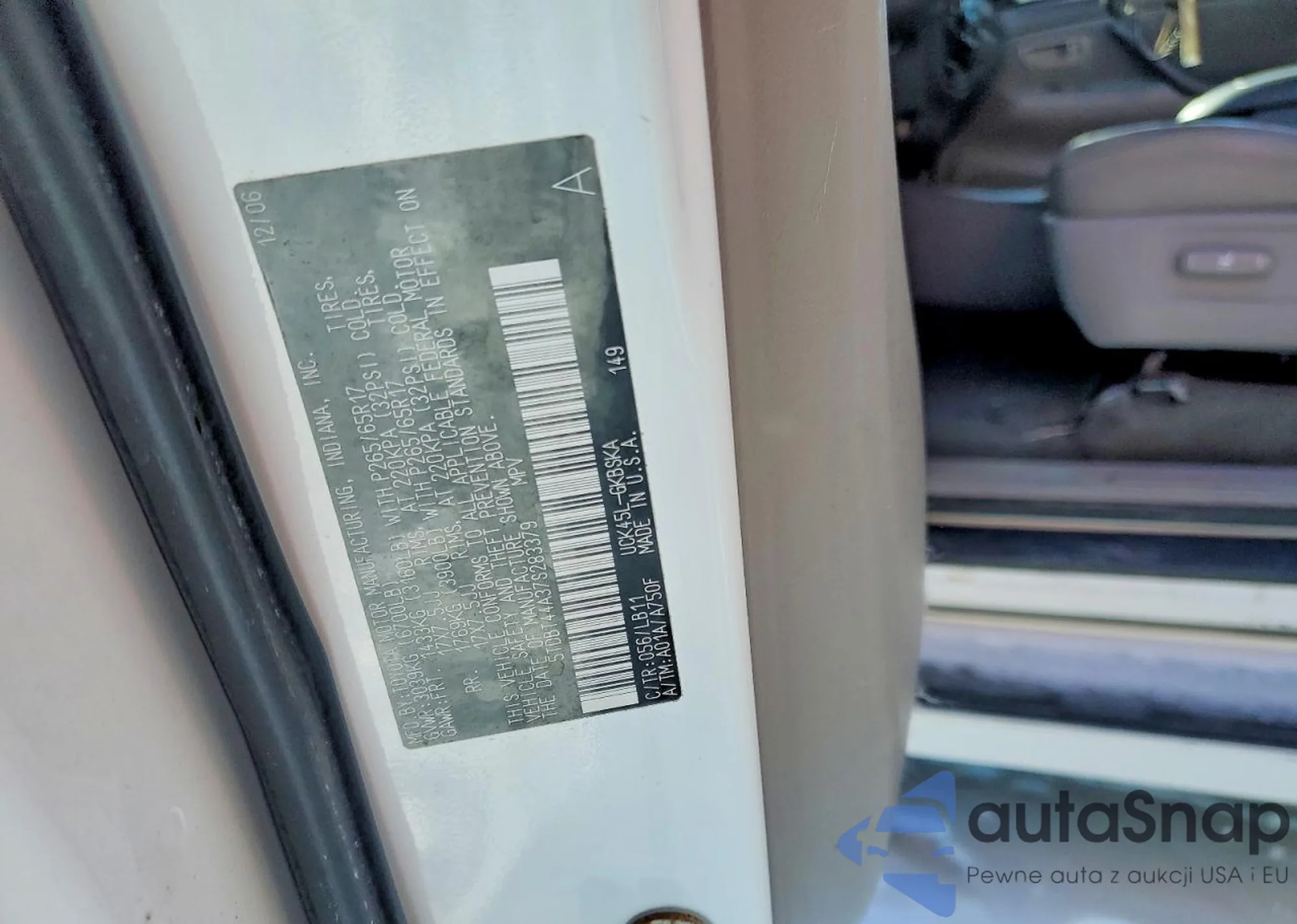 LOT: 74872825 VIN: 5TDBT44A37S283379