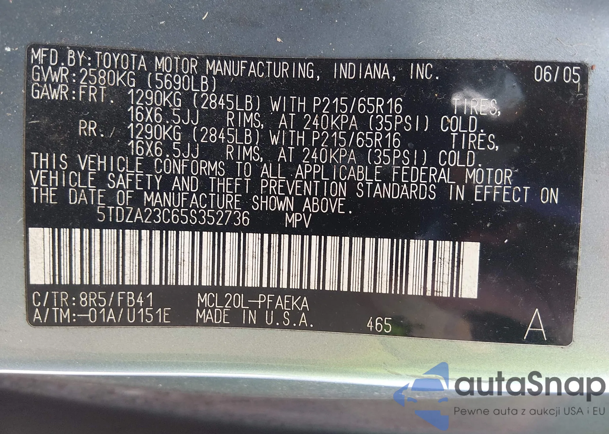 LOT: 44186017 VIN: 5TDZA23C65S352736